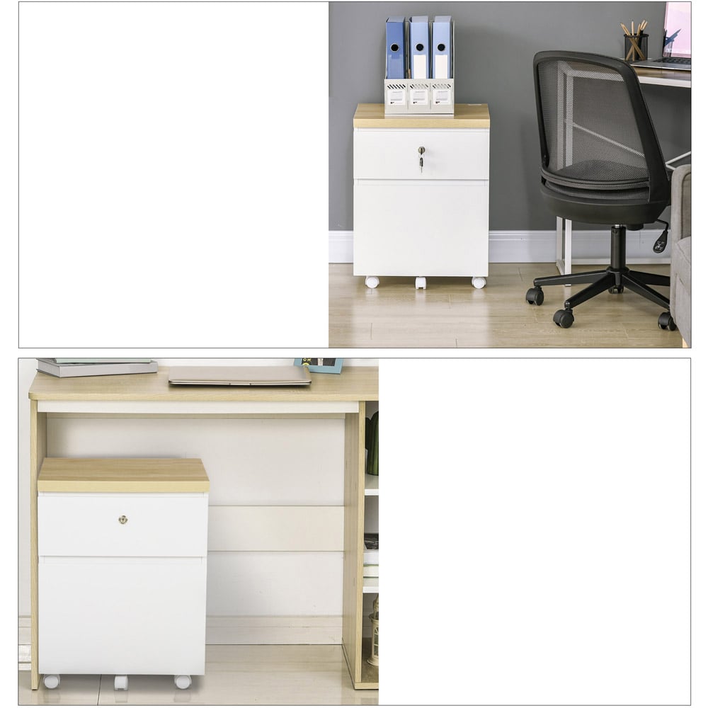 This modern 2 Drawer File Cabinet from Vinsetto can help you maximize utilization of the space and convenient use. Its two large drawers provide you with lots of storage for files and office supplies. The upper drawer with a lock and two keys secure your privacy and important items. The lower drawer has hanger bars which help you store A4-size files. Each drawer has cushioned metal rails for an easy and smooth user experience. The spacious top can be used to place a printer or some knick-knacks. It also features five smooth-rolling casters with two brakes which make it easy to move and for stability. The hidden recessed handle design adds more elegance and convenience. With a simple and modern look, this filing cabinet can also be the little extra you needed in the home office or study.