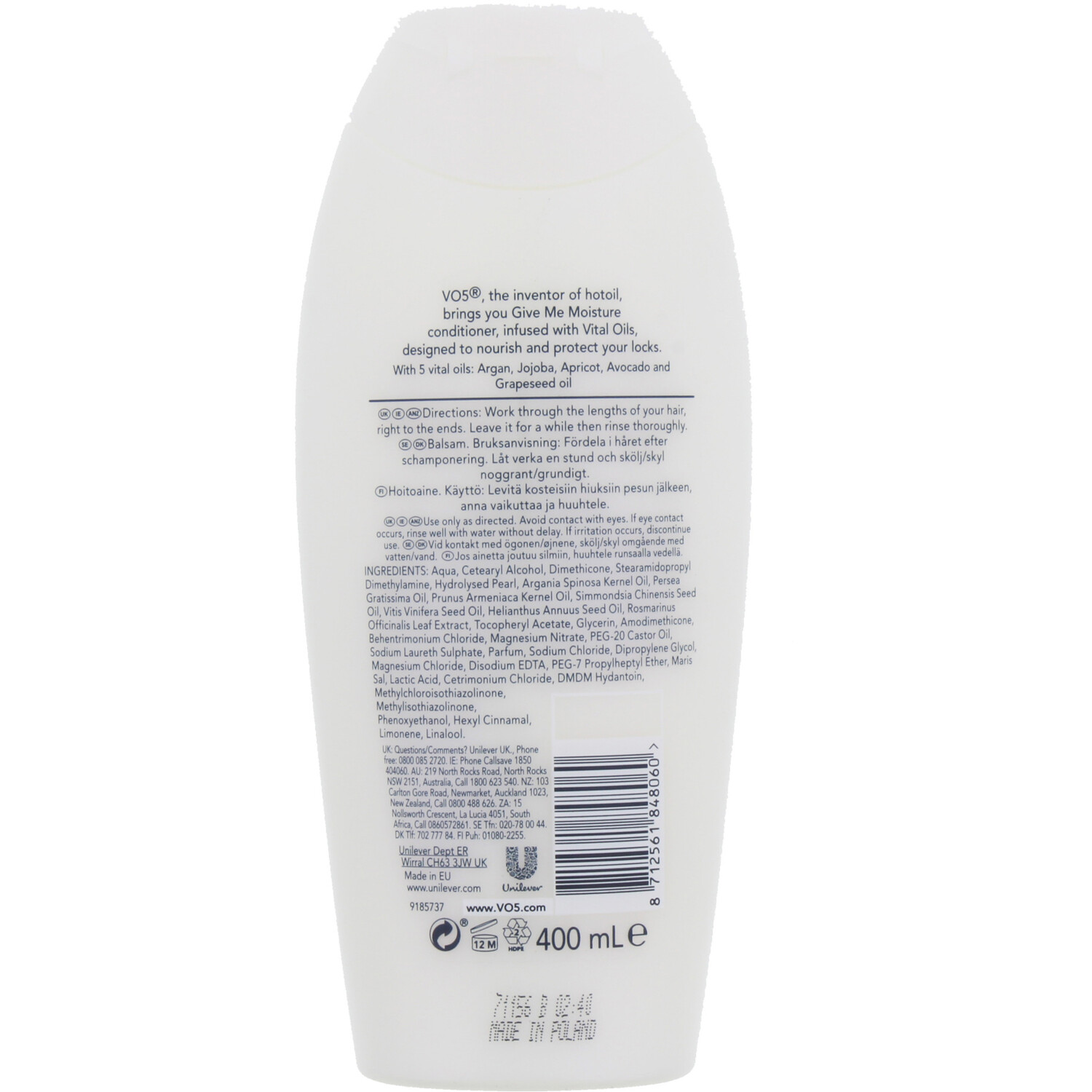Prepare your hair for ultimate style with the Vo5 Give Me Moisture Conditioner. This luxurious conditioner reinvigorates dry hair with balanced moisture, creating smooth and silky hair. Try something different on your hair like this wonderful, moisturising conditioner from Vo5.
