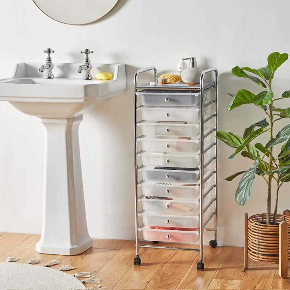 The VonHaus Mobile Storage Trolley is lightweight yet sturdy and provides lots of space for you to store office supplies like envelopes, paper clips and ink cartridges, or cosmetics, hair and beauty accessories for a salon. Drawer Dimensions- Length 34cm x Width 26cm x Height 6cm.