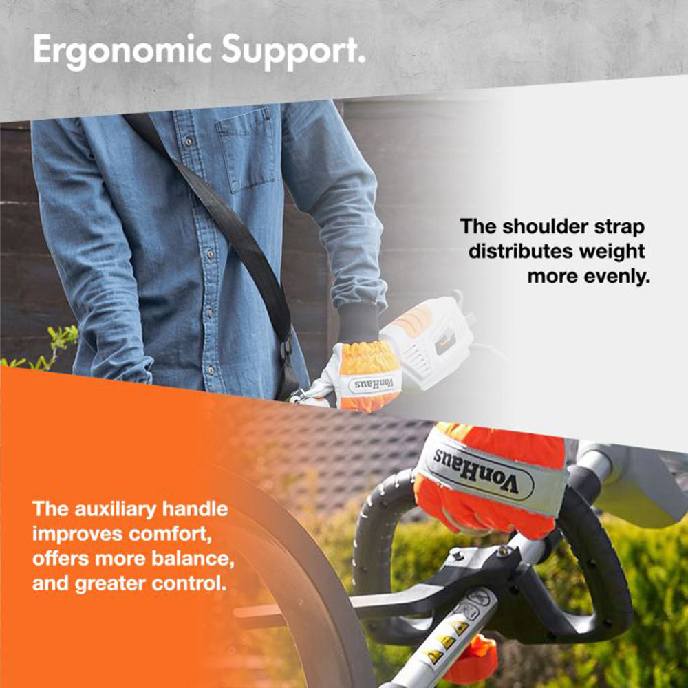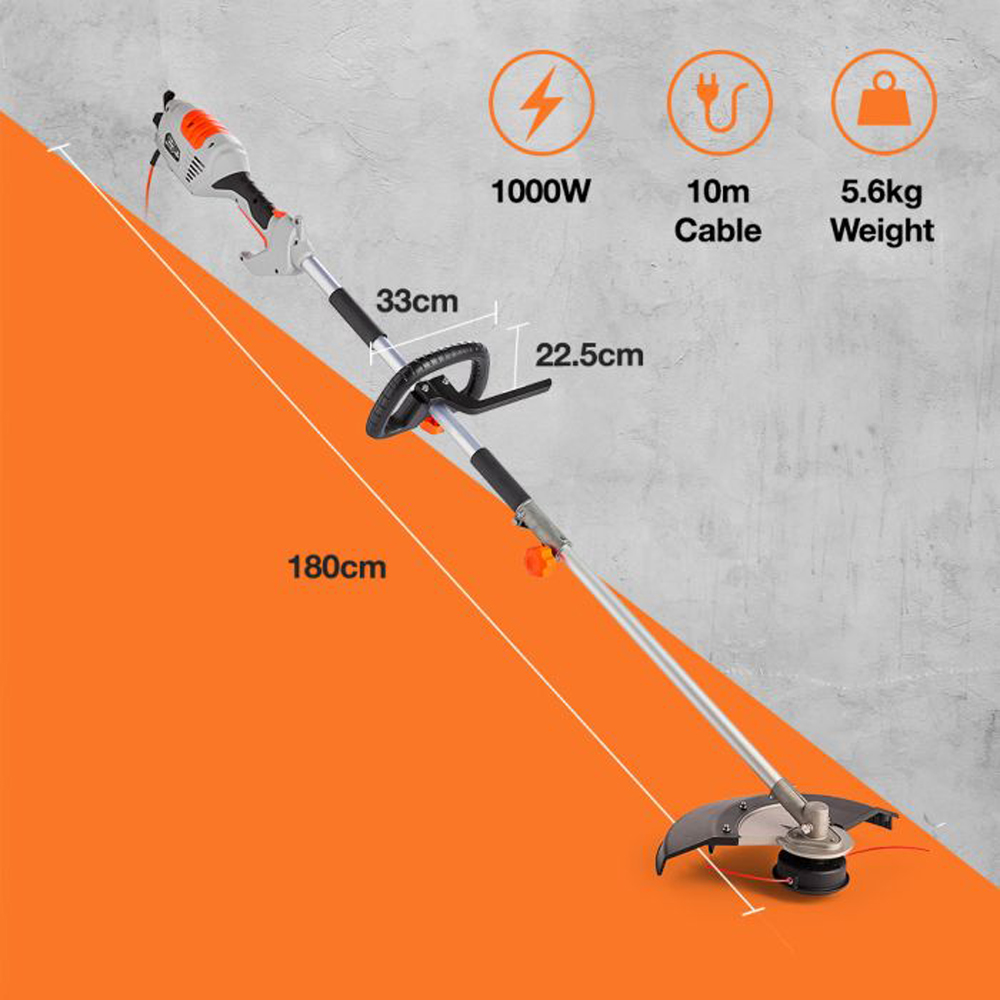 Utilise the versatility of a grass trimmer for neatening edges around lawns, fences, decking and more, as well as the strong cutting power of a brush cutter for pruning and maintaining with this 2-in-1 tool.