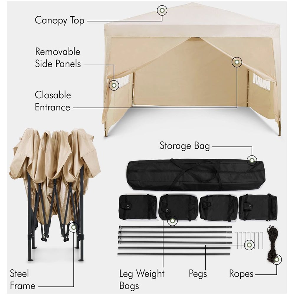 Transform your garden into a cosy and comfortable place for those warm summer days and evenings with the VonHaus Cream Pop-up Gazebo. Featuring a convenient 3 x 3m frame that is simple to assemble, this gazebo is perfect for family get-togethers, outdoor parties, and relaxing afternoons in the cool shade. The canopy is crafted from sturdy, weather-resistant materials, ensuring long-lasting protection. Additionally, each telescopic leg is adjustable, allowing you to securely place the gazebo on any type of terrain.
