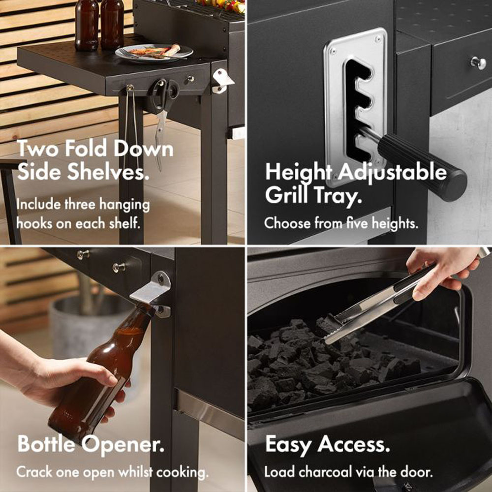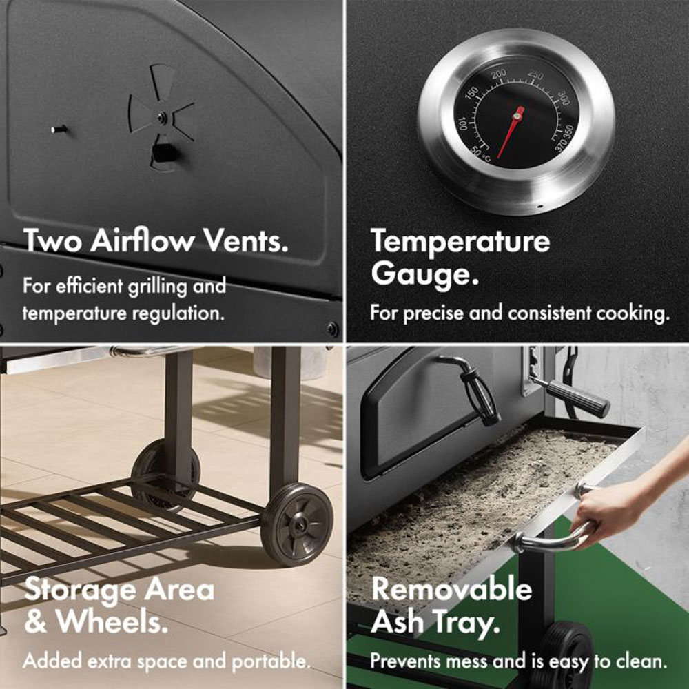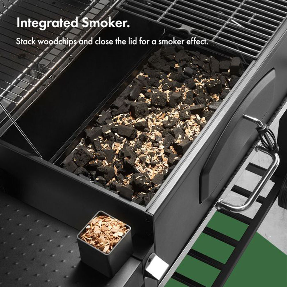 Discover a new way to enjoy meat, fish, and veg with the VonHaus XXL American style BBQ. Featuring 2-in-1 functionality, level up the classic BBQ staples and impress your garden party guests. When not in use, fold down the side tables and wheel the portable BBQ away until grilling season returns. To smoke simply attack your woodchips, close the ventilation, and enjoy your food with a woodfired American twist!