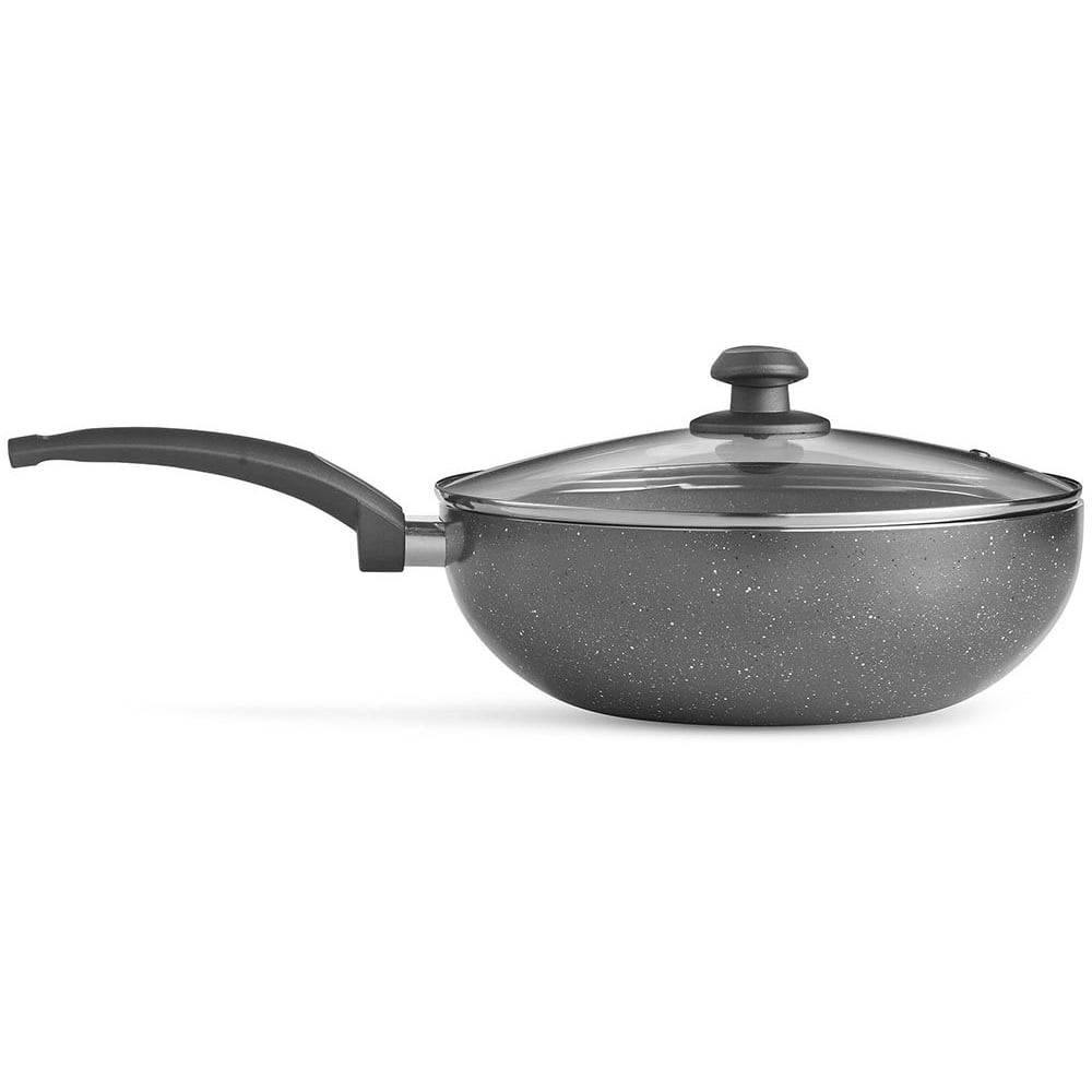 Elevate your cooking experience with the VonHaus VonShef Marble Wok 28cm. This marble wok cooks meals quicker, easier and healthier and even saves on the washing up. It is suitable for all hob types, including induction systems. The ergonomic handle makes it an efficient addition to your kitchen.
