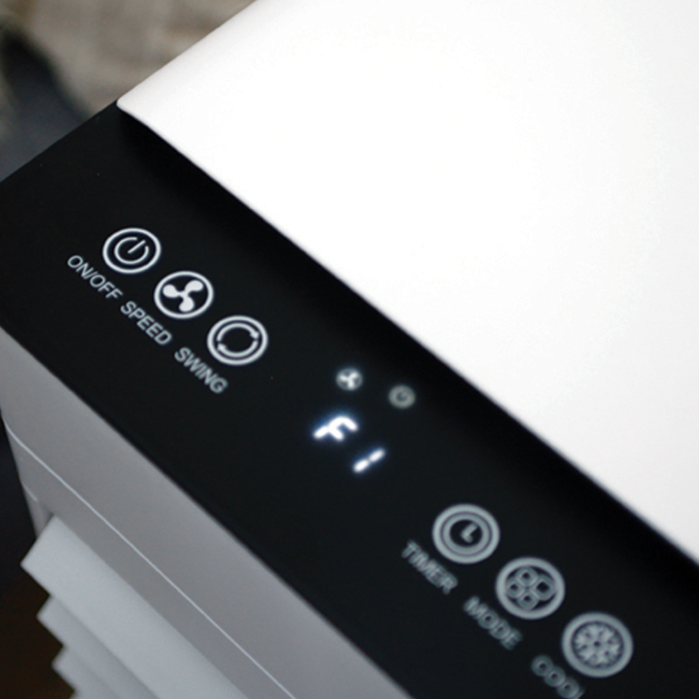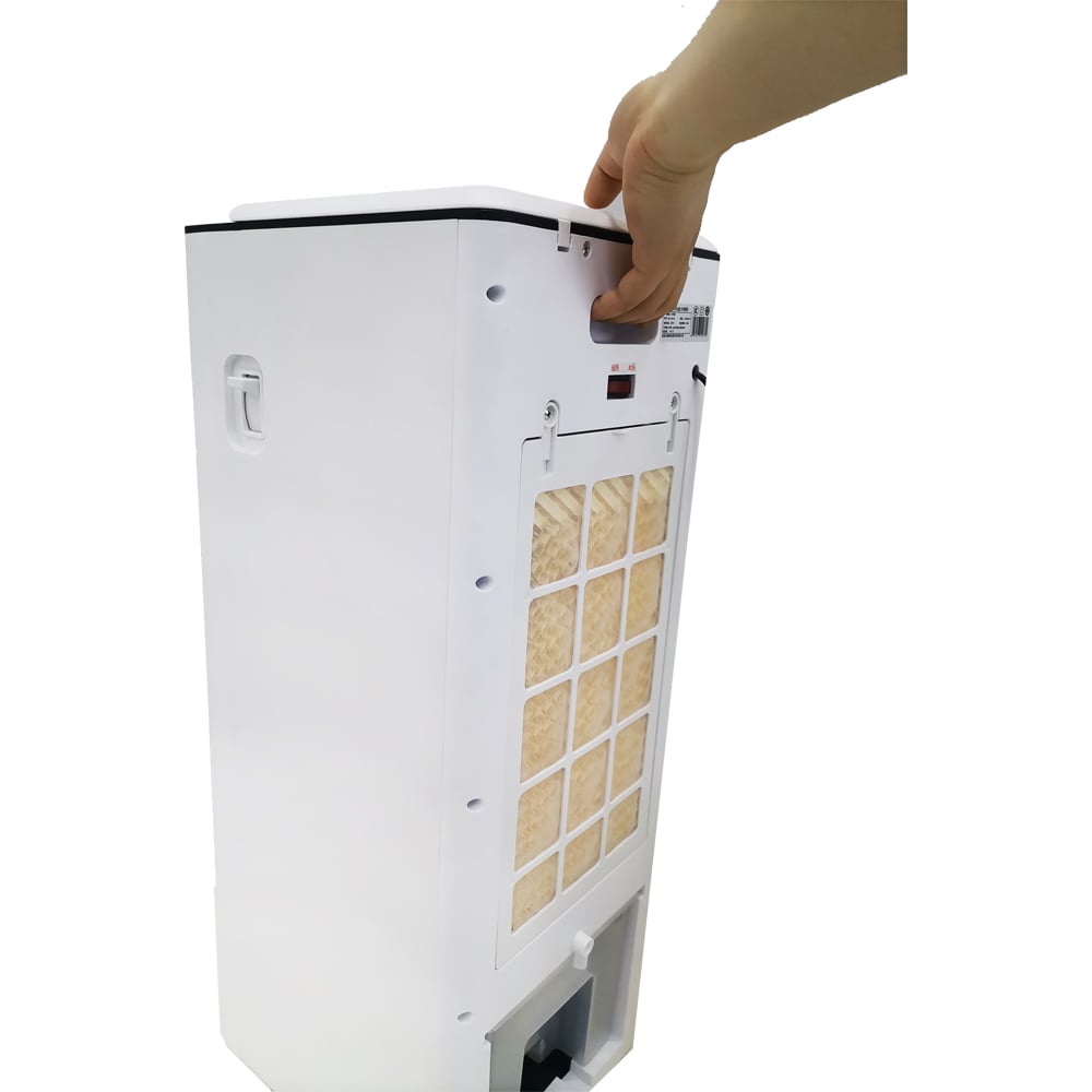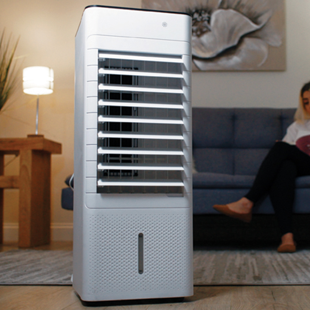 Create a cool atmosphere on those long, hot summer days and nights with the Vybra White Air Cooler 7L. Featuring three speeds – low, medium and high and three modes – normal, natural and sleep. It is both a remote and manually touch-controlled air cooler. Packed with extra cooling features, such as three ice boxes to help reduce the air temperature - it comes with manually adjustable horizontal air vents, a remote 120-degree automatic vertical swing option, and a 12-hour timer. Suitable for rooms up to 20m2 - it is perfect for bedrooms, sitting rooms, playrooms, dining rooms and most rooms in your home (not suitable bathrooms or wet rooms). It is also equipped with castor wheels for ease of moving from room to room. Dimensions: 235 x 260 x 560mm.
