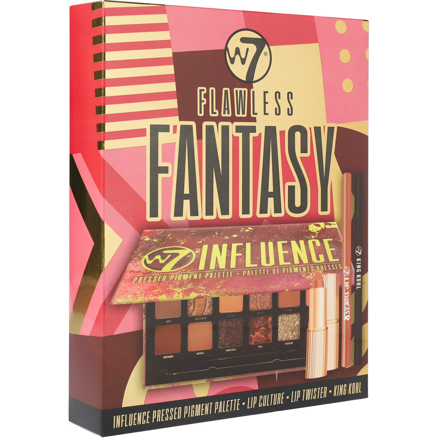 Get the perfect look for your night out or day out with the W7 Flawless Fantasy Gift Set. Offering a flawless look, the palette has deep, seductive tones with nude elements—perfect for every outfit and event! On the palette, you'll find matte, shimmer, and glitter pigments that can create a gorgeous smokey eye that looks beautiful with the included eyeliner, lip liner, and nude lipstick. It would make the perfect gift for yourself or a loved one.