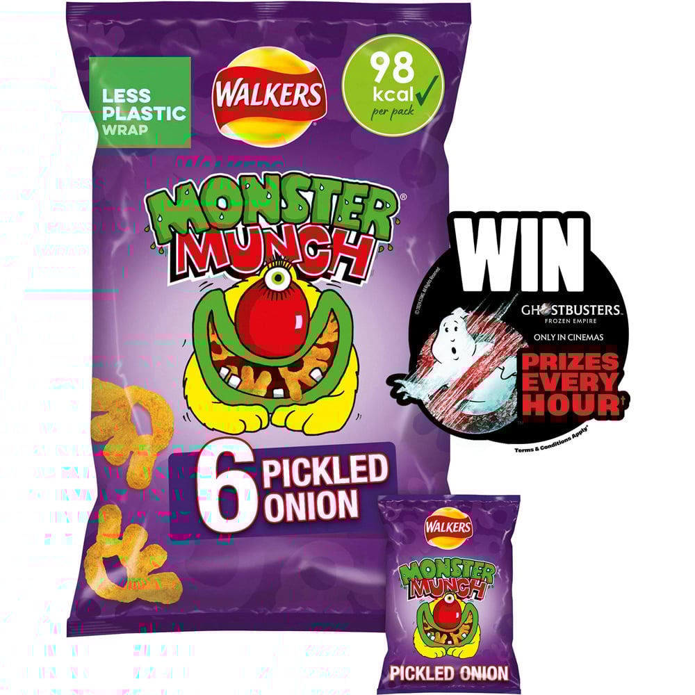 Deliciously Tangy Walkers Monster Munch Pickled Onion Flavour Snacks - Multipack Contains 6 X 20G Packets Of Walkers Monster Munch Snacks - Crunchy, Tasty And Totally Spooky, Monster Munch Are A Family Favourite - Baked Not Fried And Contain No Artificial Colours - Suitable For Vegetarians. 98 Kcal Per Pack. Baked Not Fried. No Artificial Colours Or Preservatives. Suitable For Vegetarians. Walkers.