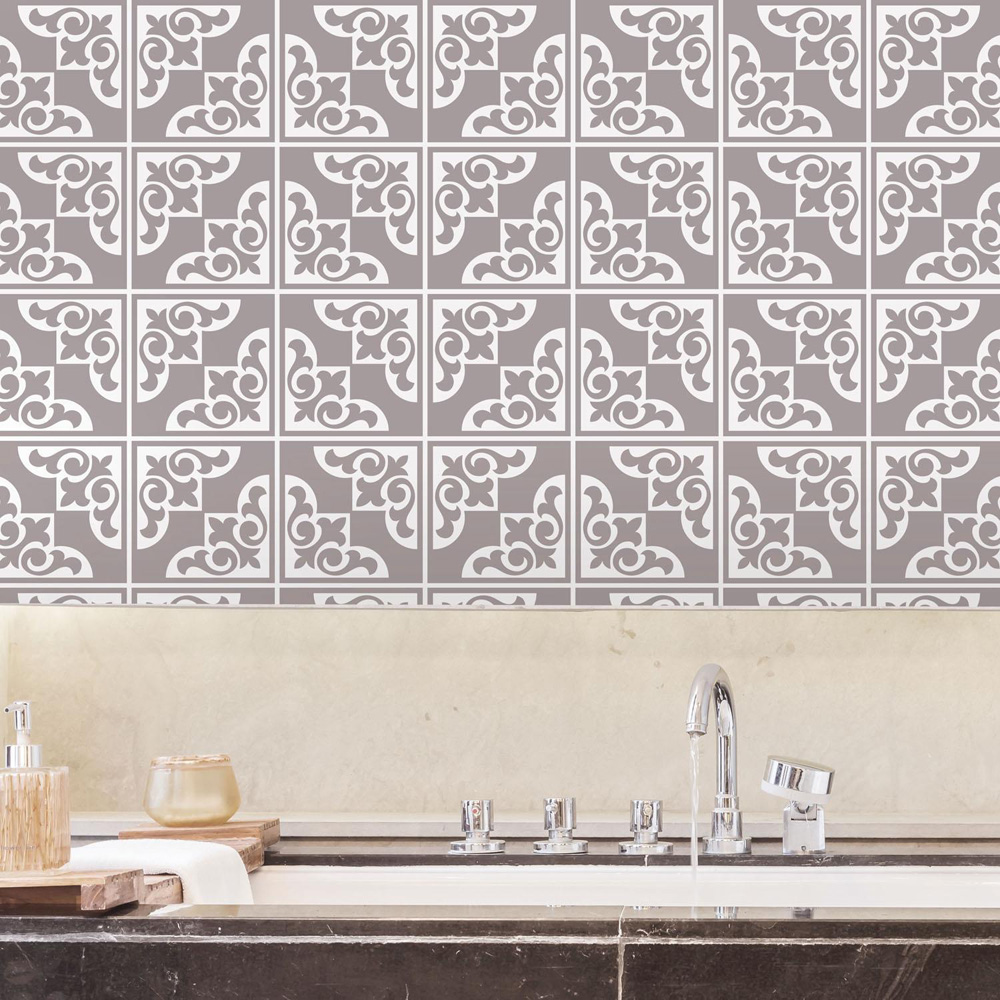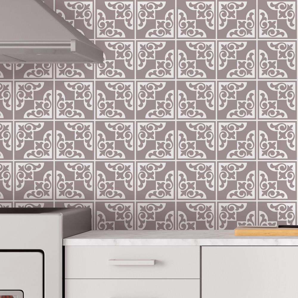 Walplus Audley Monochromatic Taupe Victorian Tile Sticker 24 Pack