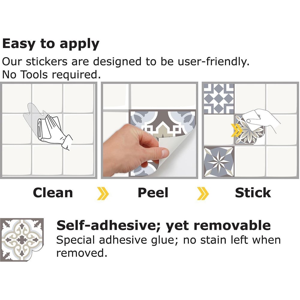 Change the look and feel of your home in minutes with Walplus Azulejo Brown Self Adhesive Tile Stickers 24 Pack. These beautifully patterned staircase stickers in red and yellow will enhance the warm and inviting ambience of your home. These tile stickers feature a realistic print design and are perfect for transforming the look of your backsplash, bathroom, cabinet and kitchen with these stickers. They are easy to install and remove without leaving a trace. To apply, just peel and stick onto any clean, flat surface, and you are good to go! Do not wait another day to make your home feel as bright and wild as you are! The stickers can be easily trimmed or cut to fit. Application: Only attach to the painted surface at least three weeks after painting and clean the surface before application. Stickers applied on laminated or wallpapered surfaces cannot be removed. The stickers are not fire-resistant! Do not apply in places with direct contact with fire! Do not apply near or above the cooker, stove or other source of heat! The pack contains 24 pieces of stickers. Size: 10 x 10cm. Coverage area: 0.24 sqm or 2.5 sqft.