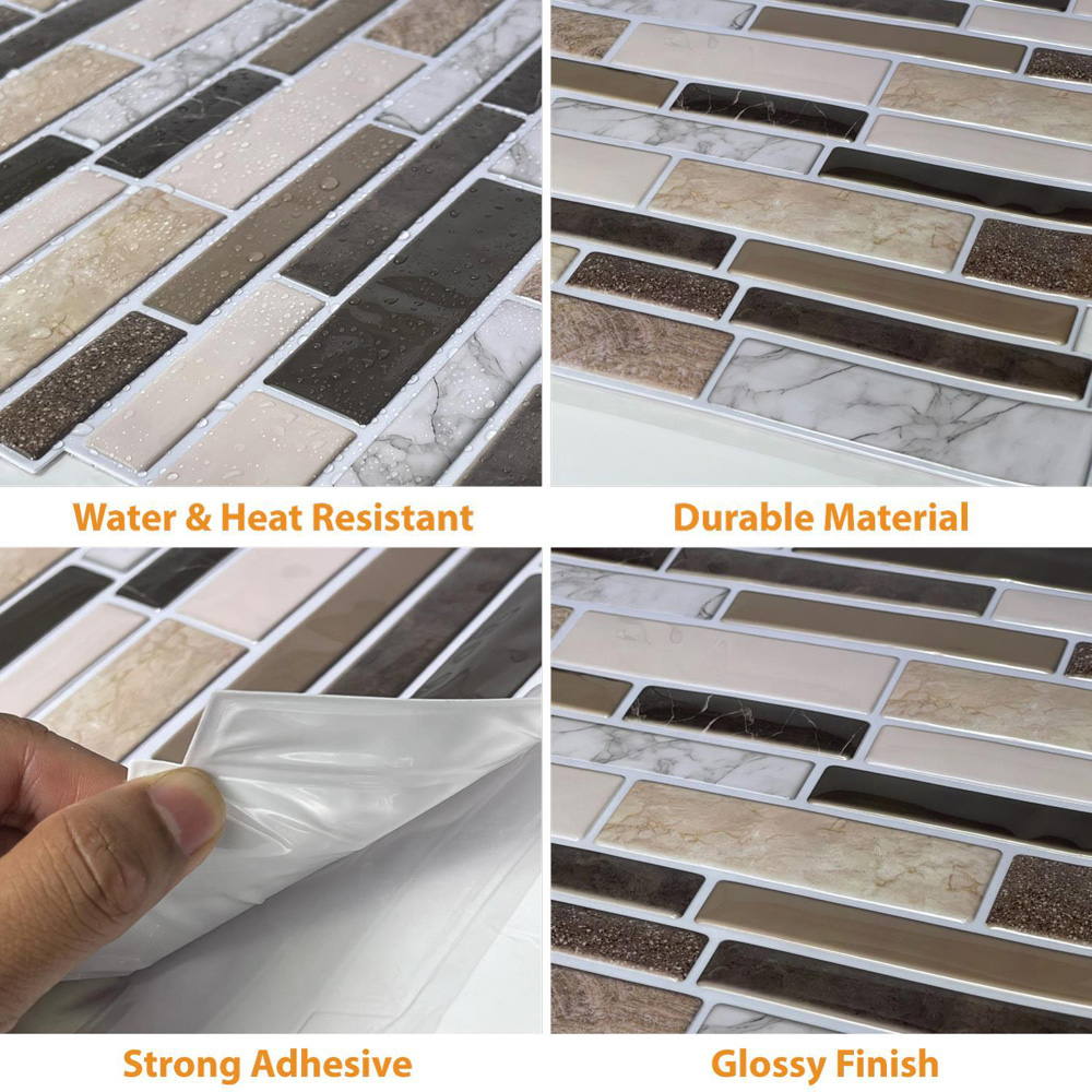Walplus Brown Stone Glossy Mosaic Peel and Stick Backsplash 3D Tile Stickers 10 Pack