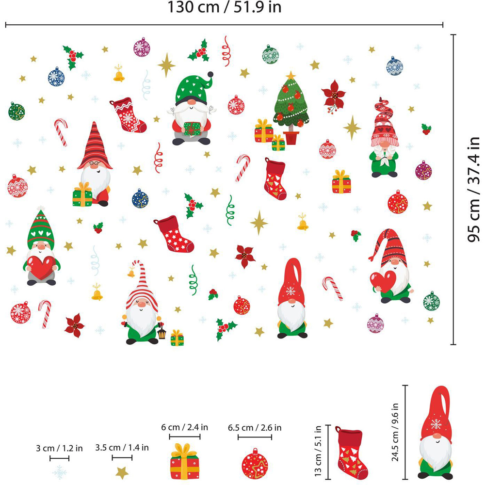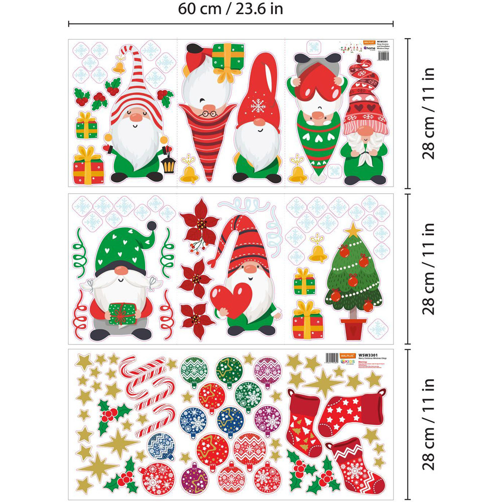 Sprinkle festive cheer across your windows with Walplus Christmas Gnomes and Colourful Baubles Window Stickers 117 Piece. This special window sticker set is designed with double-sided prints, so you can enjoy the cheerful designs from both inside and outside your home. They make decorating easy, quick, and fun. These are perfect for windows, mirrors, and most glossy surfaces. With their electrostatic design, these clings need no glue and can be reused as many times as you like. To apply, simply clean the surface, and for best results, spray a little water on the window. Removal is also hassle-free and leaves no marks. Please note that despite every effort to represent the products accurately, the printed colours may differ slightly from the colours displayed on screen. This set allows for a finished display size of 95 x 130cm, depending on preference. The package includes nine sheets of 20 x 28cm, containing 117 stickers.