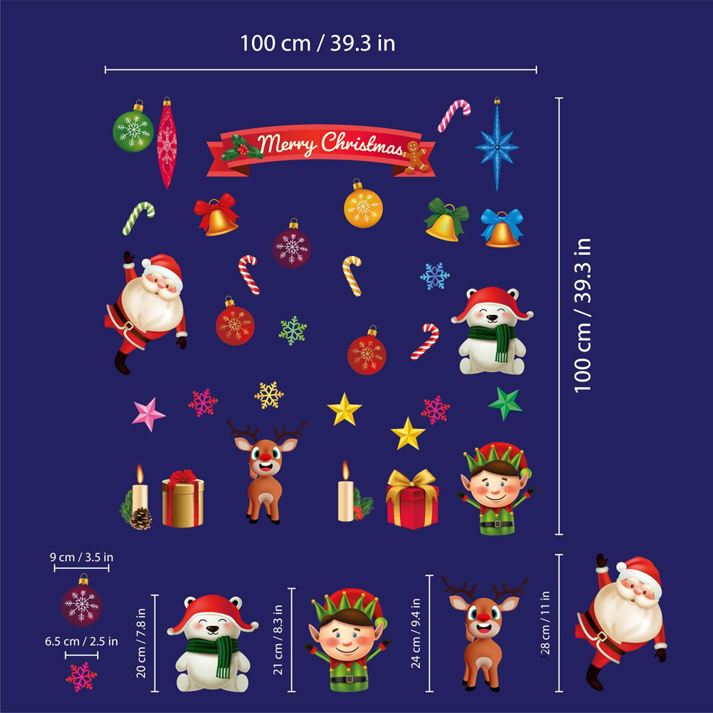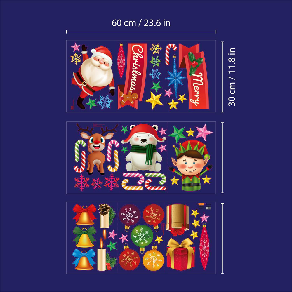 Sprinkle festive cheer across your windows with Walplus Colourful Christmas Crew Window Stickers 59 Piece. This special window sticker set is designed with double-sided prints, so you can enjoy the cheerful designs from both inside and outside your home. They make decorating easy, quick, and fun. These are perfect for windows, mirrors, and most glossy surfaces. With their electrostatic design, these clings need no glue and can be reused as many times as you like. To apply, simply clean the surface, and for best results, spray a little water on the window. Removal is also hassle-free and leaves no marks. Please note that despite every effort to represent the products accurately, the printed colours may differ slightly from the colours displayed on screen. This set allows for a finished display size of 100 x 100cm, depending on preference. The package includes three sheets of 60 x 30cm, with 59 pieces of stickers.