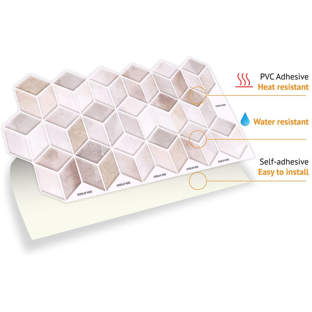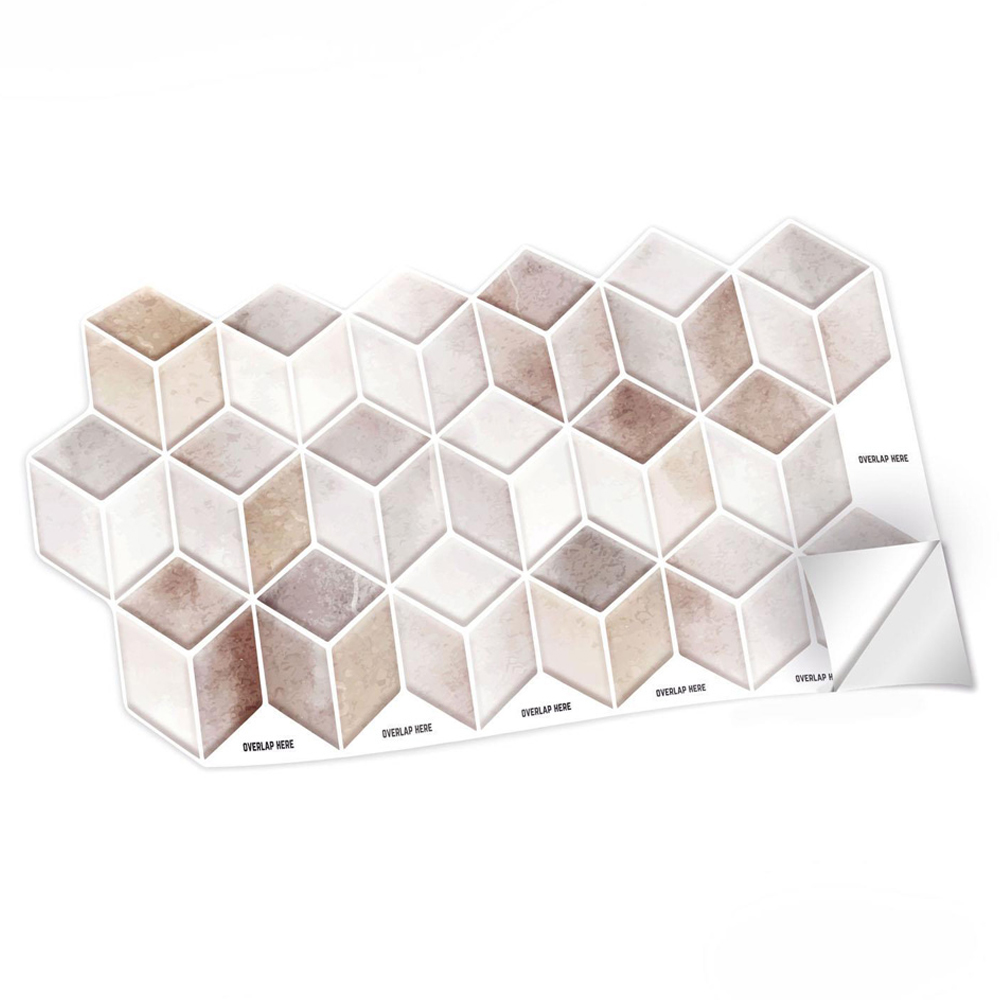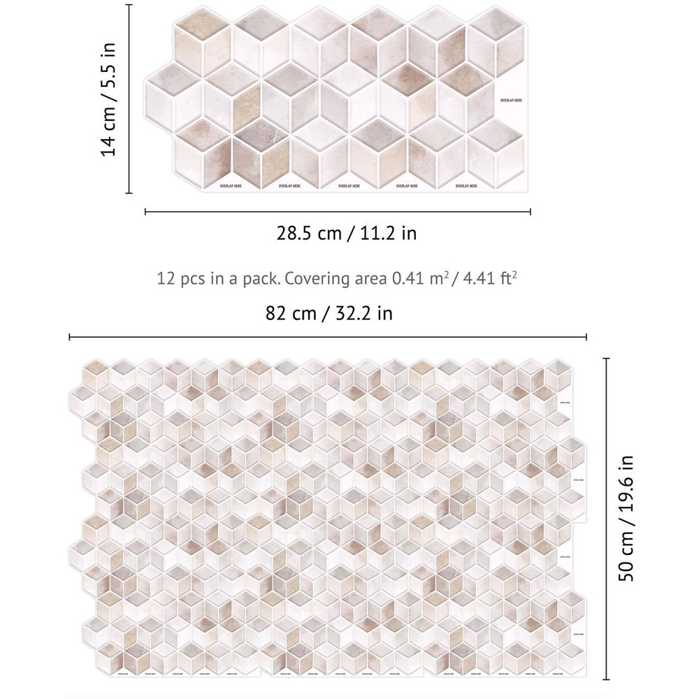 Walplus Cream Stone Hexacube Wall Tile Sticker 12 Pack