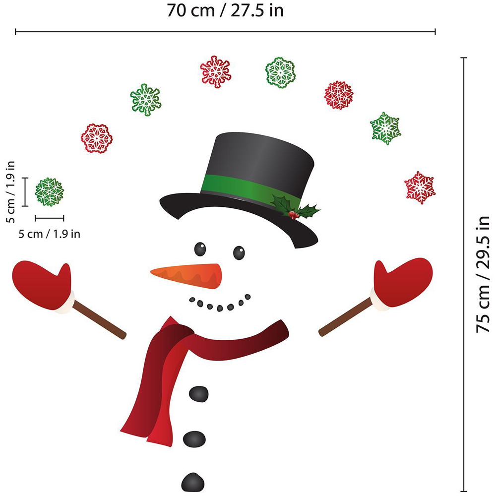 Create a festive focal point in minutes with the Walplus Happy Snowman Decoration Self Adhesive Christmas Wall Stickers 21 Piece. Made for easy application, these self-adhesive stickers stick smoothly to walls, windows, doors, closets and other flat surfaces, allowing you to decorate with ease. Each sticker peels off without leaving stains, so your walls stay pristine after the season ends. Crafted from high-quality PVC material with double-sided print, these stickers are water and oil-resistant, adding durable, festive charm to any space. Flexible in design, they are perfect for creating unique personalized arrangements. The final size reaches up to 100 x 60cm (depending on the layout preferences). This package contains a single sheet of 28.5 x 60cm with a total of 21 stickers. Please note: Your monitor colour may vary from the actual product. Please only attach to the painted surface at least three weeks after painting and clean the surface prior to application. Stickers applied on laminated or wallpapered surfaces cannot be removed. Do not apply in places with direct contact with fire!