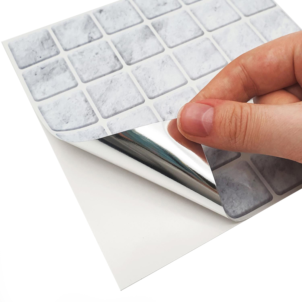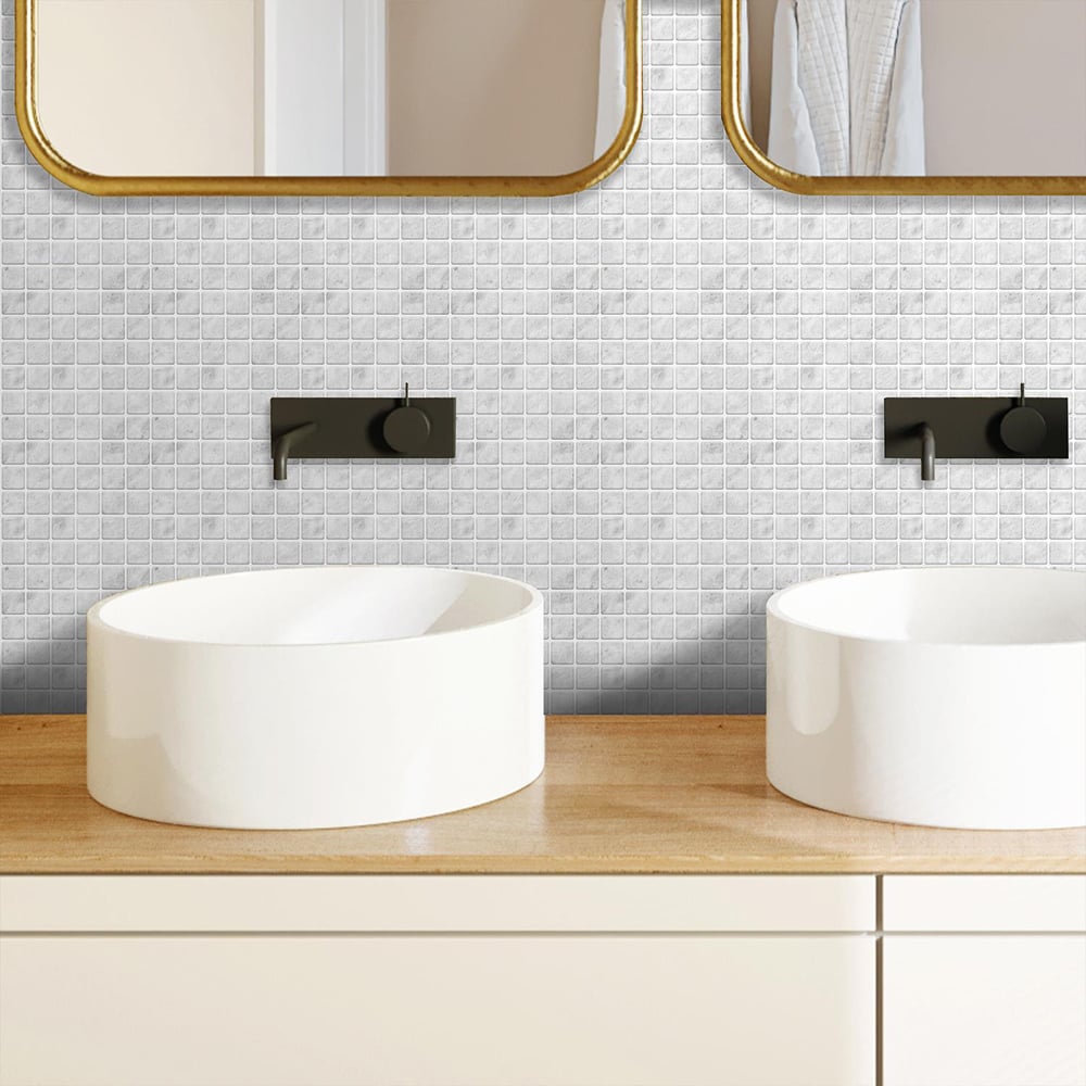Walplus Lux Touch Light Marble Mosaic White Grey Self Adhesive Tile Sticker 24 Pack