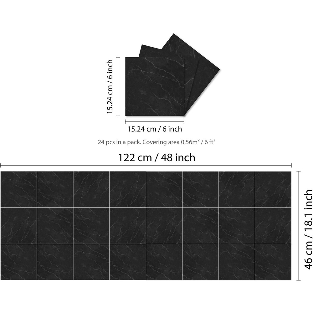These reflective Marble Stone Dark Grey Tile Stickers from Walplus are ideal for giving your interior a whole new look, DIY within minutes without adding more labour cost like traditional tiles! To apply, just peel and stick onto any clean, flat surface, and you are good to go! Plus, it can be easily trimmed or cut to fit. Water and heat-resistant, these innovative stickers with long durability will complement a range of decor themes. Notes: Please only attach to the painted surface at least three weeks after painting and clean the surface before application. This product can be applied in any room, avoiding permanently wet areas. Please note that for walls covered with latex paint, it is recommended to add a layer of spray adhesive to prevent the tiles from peeling off. Even though every effort is made to depict our products accurately, the printed colour may differ slightly from the colour displayed on the screen. This package contains 24 pieces of stickers 15.24 x 15.24cm or 6 x 6 inches. Coverage area: 0.56sqm.