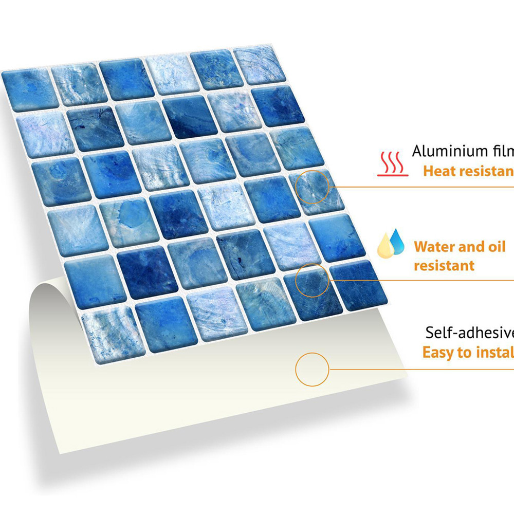 Bring the shine and elegance of precious gemstones into your space with these Walplus Mother Pearl Blue Jewel Mosiac Self-Adhesive Tile Stickers. Easy to apply, simply peel and stick onto any clean, flat surfaces like walls, furniture or window screens and you are good to go. Also, the stickers are quite simple to remove and do not leave a trace. Perfect for brightening up your space, these tile stickers boast a realistic print with long durability making a perfect fit for all homes. Moreover, they can be easily trimmed or cut to fit anywhere. Water and heat-resistant, you can use these stickers in bathrooms (not shower areas), kitchens and other flat surfaces. However, it won't stick to rough surfaces that have texture on them. Application notes: Please only attach to the painted surface at least three weeks after painting and clean the surface prior to application. Stickers applied on laminated or wallpapered surfaces cannot be removed. Do not apply in places with direct contact with fire. Please note that even though every effort is made to depict products accurately, the printed colour may differ slightly from the colour displayed on the screen. Pack of 24. Size: 15cm (6 inch). Coverage: 0.54sqm.