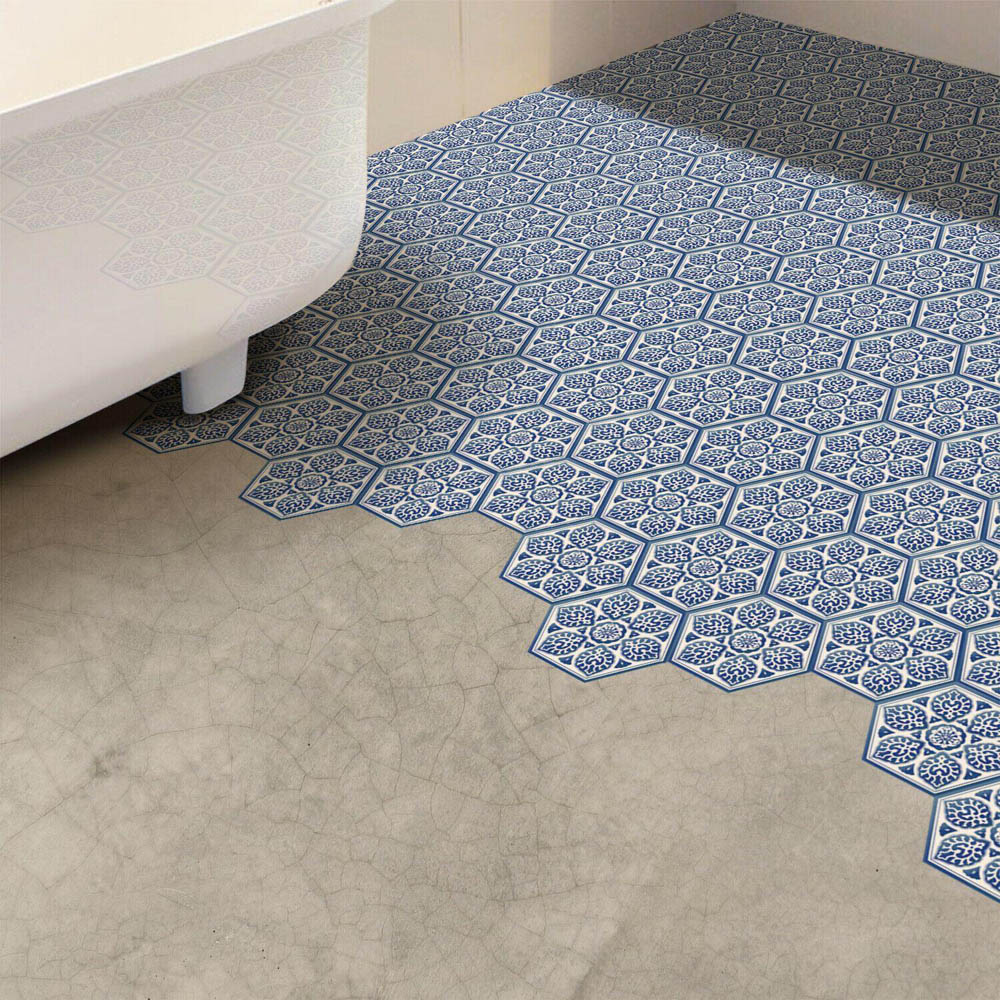 Add a unique touch to any room with the WALPLUS Porcelain Blue Hexagon Floor Tile Sticker. These blue and white floor tile stickers from are absolutely stunning. They're designed to be easy to apply and remove. The package comes with ten stickers, each with a beautiful blue and white floral pattern that reminds of fine China. The stickers are made of high-quality PVC material, so they're durable and long-lasting. The dimensions of each sticker are 20 x 23cm, and the total area coverage for ten pieces is 0.35m2. Just a quick note, though - it's best to only attach these stickers to a painted surface at least three weeks after painting is completed. They can be applied to laminated surfaces, but it may cause damage upon removal. And if you have wallpaper, these stickers cannot be removed. These floor tile stickers are the perfect DIY solution for anyone looking to make a stunning addition to your home decor.
