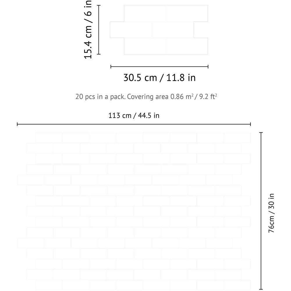 The WALPLUS Pure White Glossy Tile Stickers give your interior a whole new look without the need for traditional tiles. These stickers are easy to apply and can be DIY-ed within minutes. All you need to do is peel and stick them onto any clean, flat surface, and you're good to go! The innovative 3D surface of these stickers ensures long durability, water and heat resistance. They can also be easily trimmed or cut to fit any surface. However, it is important to note that these stickers should only be attached to a painted surface at least three weeks after painting and the surface should be cleaned prior to application. While these stickers can be applied in any room, it is recommended to avoid permanently wet areas. If you have walls covered with latex paint, it is recommended to add a layer of spray adhesive to prevent the tiles from peeling off. Please note that the printed colour of these stickers may differ slightly from the colour displayed on the screen. The package contains 20 pieces of stickers 30.5 x 15.4 cm or 12 x 6 inches. Coverage area: 0.85sqm.