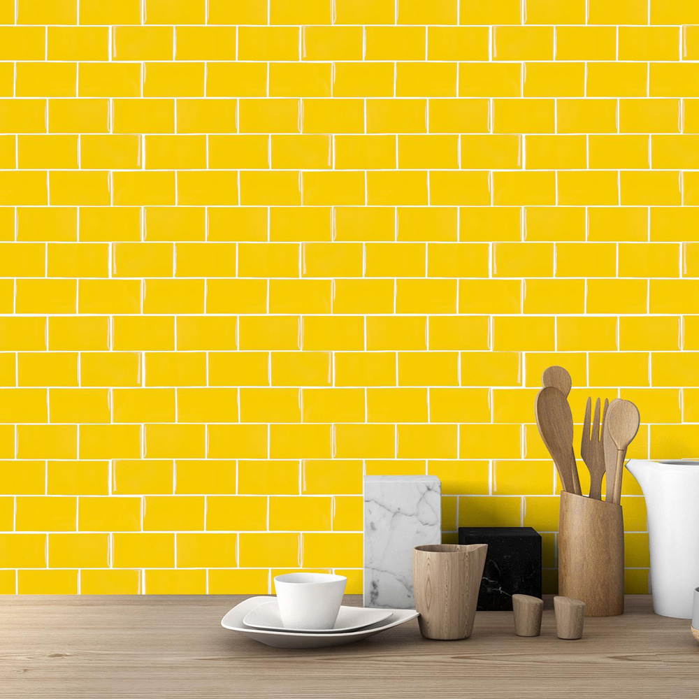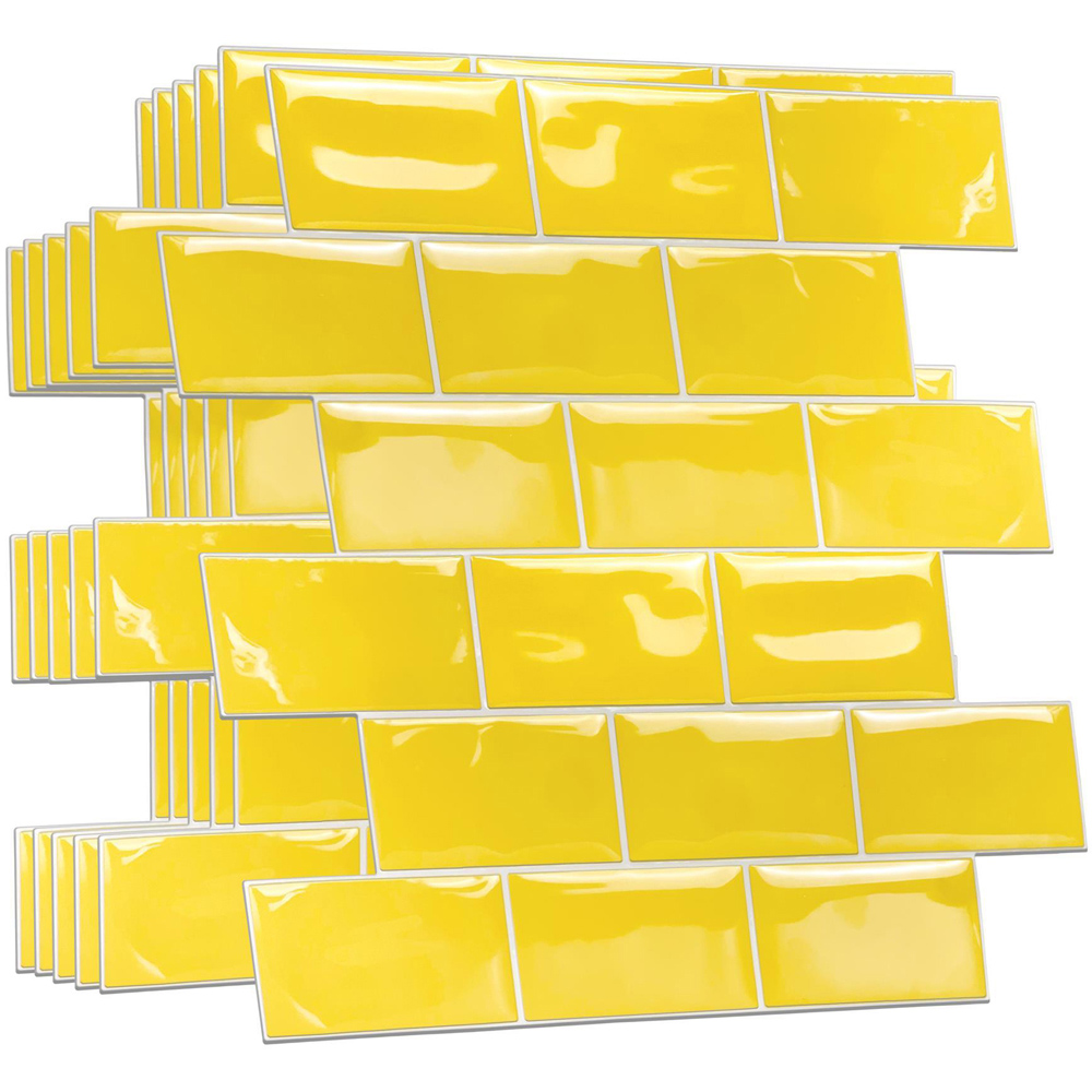 Give your interior a new look with the Walplus Pure Yellow Glossy Subway Peel and Stick Backsplash 3D Tile Stickers 20 Pack. This tile sticker features an innovative 3D surface with long durability and water resistance. They are ideal for DIY. To apply, just peel and stick onto any clean, flat surface. They can be easily trimmed or cut to fit. Application Notes: Please only attach to the painted surface at least three weeks after painting and clean the surface before application. This product can be applied in any room, including wet areas and shower rooms. Please note that for walls covered with latex paint, it is recommended to add a layer of spray adhesive to prevent the tiles from peeling off. Even though every effort is made to depict this product accurately, the printed colour may differ slightly from the colour displayed on the screen. Package Contains 20 pieces of stickers 30.5 x 15.4cm. Coverage area: 0.85sqm or 9.2sf.