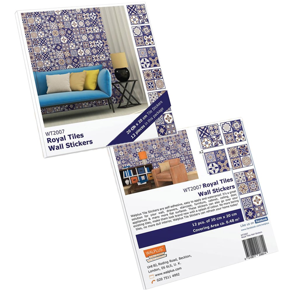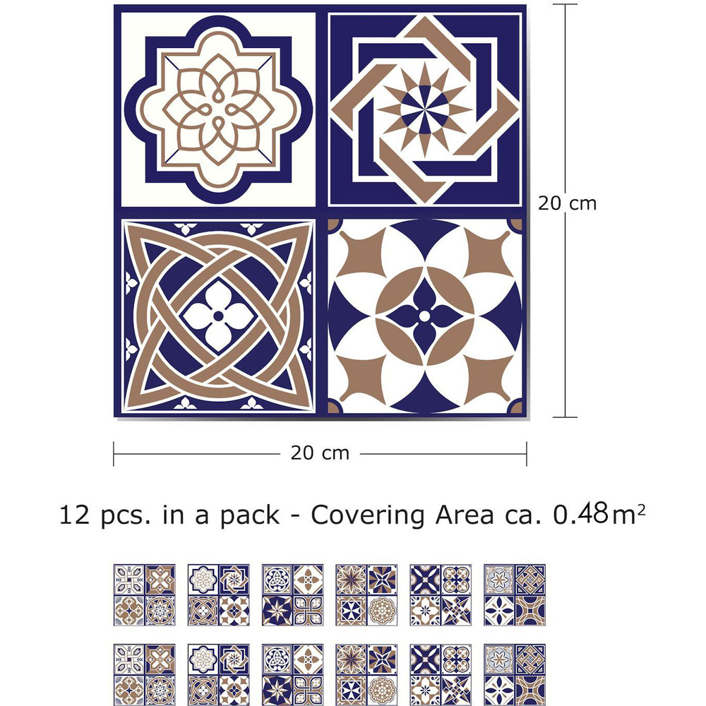 Featuring deep blues and graceful arches, these Royal Tiles Wall Stickers from Walplus are the perfect addition to any home, modernist or traditional! The busy design keeps it ageless and elegant, the deep blue refined. They give your home the feel of a luxury resort with just a few simple touches, and without spending a fortune! To apply these tile stickers, simply peel and stick them onto any smooth, flat surface, no other assembly is required. Water and heat-resistant, they will make your home feel like an escape, an oasis. Notes: Please only attach to the painted surface at least three weeks after painting and clean the surface prior to application. Stickers applied on laminated or wallpapered surfaces cannot be removed. Do not apply in places with direct contact with fire! Please note that due to different devices and screen settings, the colour of the webpage picture you see may have a certain colour difference from the actual product. The package contains 12 pieces of stickers 20 x 20cm. Coverage area: 0.48sqm or 5.17sf.