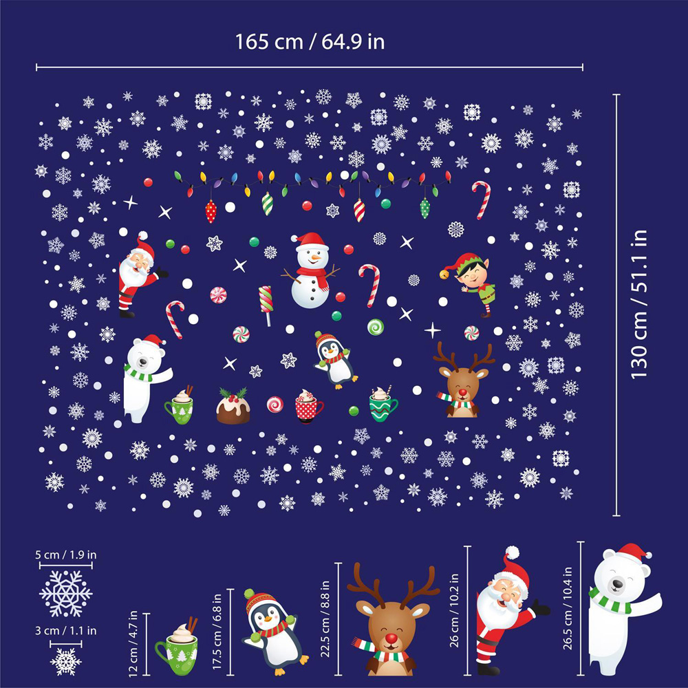Sprinkle festive cheer across your windows with Walplus Santa Friends with Snowflakes Christmas Window Stickers 334 Piece. This special window sticker set is designed with double-sided prints, so you can enjoy the cheerful designs from both inside and outside your home. They make decorating easy, quick, and fun. These are perfect for windows, mirrors, and most glossy surfaces. With their electrostatic design, these clings need no glue and can be reused as many times as you like. To apply, simply clean the surface, and for best results, spray a little water on the window. Removal is also hassle-free and leaves no marks. Please note that despite every effort to represent the products accurately, the printed colours may differ slightly from the colours displayed on screen. This set allows for a finished display size of 130 x 165cm, depending on preference. The package includes 14 sheets of 20 x 28.5cm, containing 334 stickers.