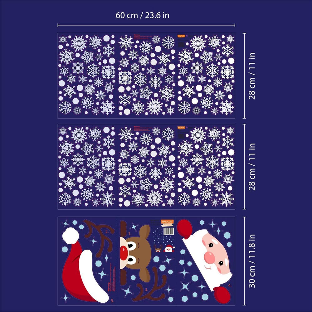 Sprinkle festive cheer across your windows with Walplus Santa and Rudolph with Snowflakes Christmas Window Stickers 320 Piece. This special window sticker set is designed with double-sided prints, so you can enjoy the cheerful designs from both inside and outside your home. They make decorating easy, quick, and fun. These are perfect for windows, mirrors, and most glossy surfaces. With their electrostatic design, these clings need no glue and can be reused as many times as you like. To apply, simply clean the surface, and for best results, spray a little water on the window. Removal is also hassle-free and leaves no marks. Please note that despite every effort to represent the products accurately, the printed colours may differ slightly from the colours displayed on screen. This set allows for a finished display size of 80 x 160cm, depending on preference. The package includes three sheets of 28.5 x 60cm, containing 320 stickers.