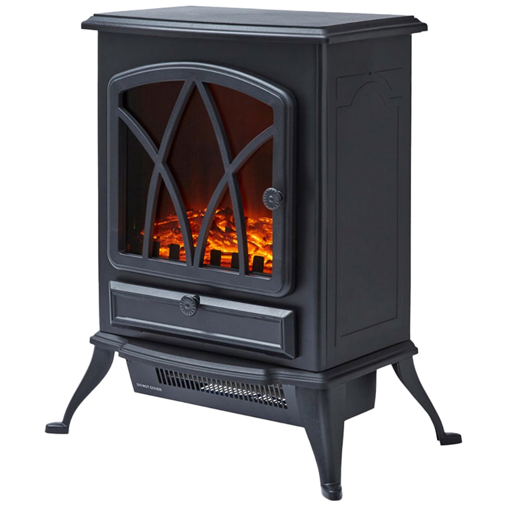 Create a warm, homely setting for your home or office with the Warmlite Black Stirling Fire Stove Heater. Featuring two heat settings of 1000W and 2000W, this device lets you find your ideal temperature. Stylish and sleek, the black cast iron design and realistic LED log flame effect create a visual feature for your living room. Also, the adjustable thermostat, adjustable brightness and flame dimmer allow you to easily select preferred settings for ideal indoor temperatures. Plus, the safety thermal cut-off device offers added peace of mind during use, making this fireplace safe as well as stylish.