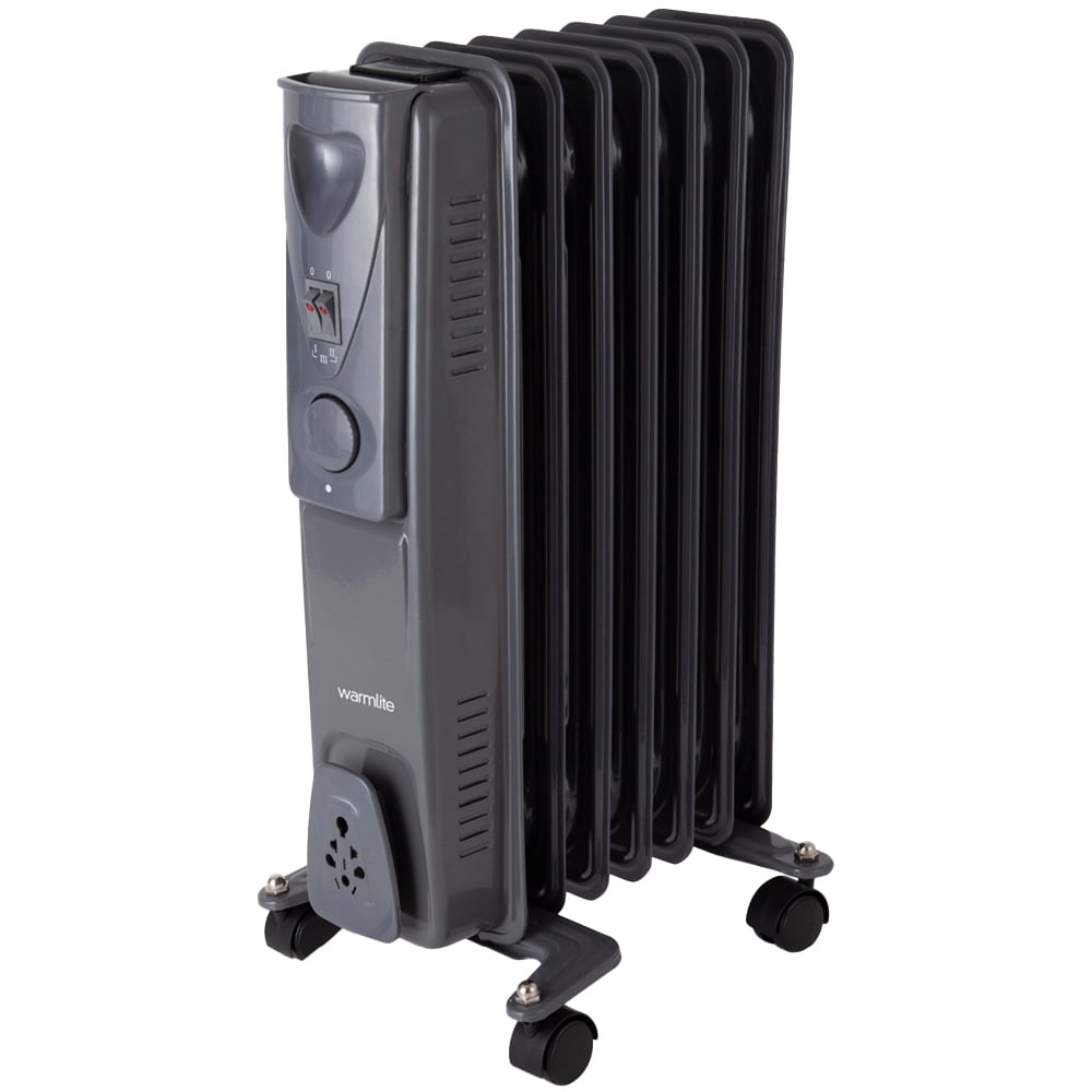 Say goodbye to the uncomfortable super cold winter nights with this Warmlite Grey Oil Filled Radiator. Featuring seven oil-filled fins, this radiator effectively heats up any room using environmentally friendly conducting oil to sustain a consistent temperature over time. The easy-to-navigate control panel features an adjustable thermostat with the choice of three temperature settings from 600W, 900W and 1500W of heat, so you can set the ideal heating level for you. Plus, the four gliding castor wheels provide easy movement between rooms, and the overheat protection ensures safe operation during use.