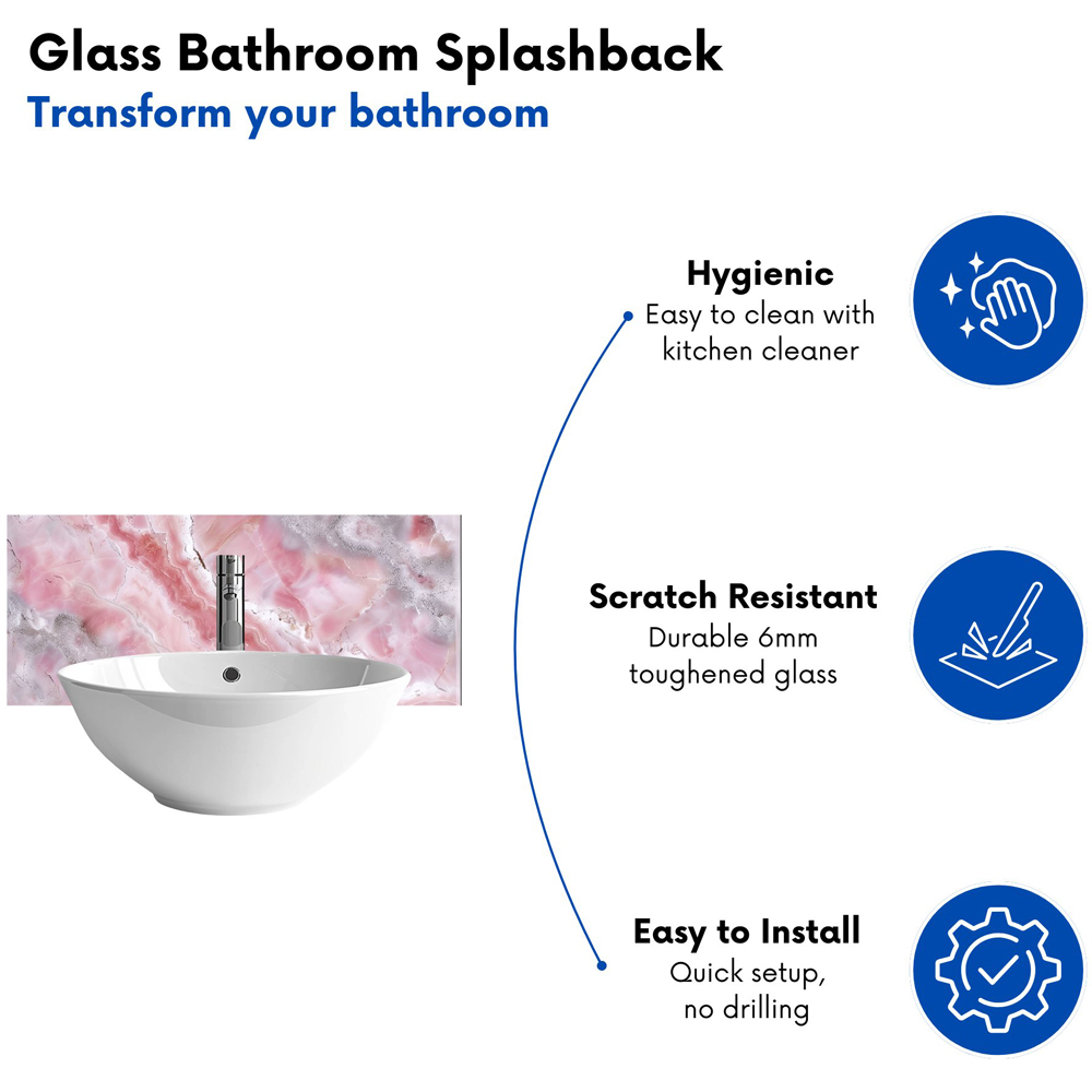 Enhance your bathroom with a beautifully designed Warren Reed glass splashback, combining elegance with practicality. Crafted from 6mm toughened glass, this splashback features a sleek, high-quality print that adds a touch of sophistication to your space. It is designed specifically for bathrooms and is resistant to moisture, mould, stains, and water, ensuring a hygienic and low-maintenance alternative to tiles, with no grout required. Easy to install with full instructions included, no drilling required, it creates a seamless and stylish finish behind any basin.