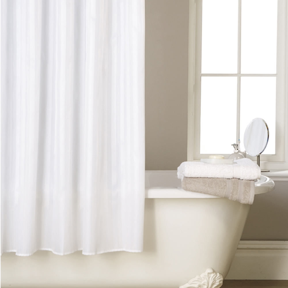 Add this beautiful curtain to your shower to complete your bathroom. This understated and simple curtain features two different gorgeous colours printed on durable, satin striped and easily cleanable PEVA polyester material. Featuring reinforced eyelets to fit any shower rail, this is sure to bring together your bathroom interior in an elegant way.