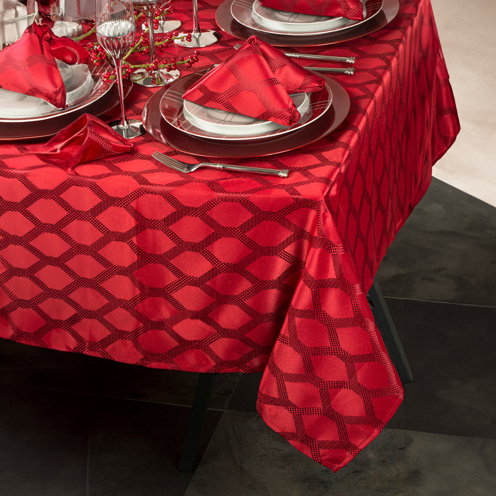 Upgrade your everyday dining experience at home with the Waterside Geo Red 9 Piece Tablecloth Set. Featuring a geo pattern on red to create a beautiful dining setting. The set comprises of one rectangle table cloth measuring 183 x 229cm and eight napkins measuring 43 x43cm. Wash instructions: 40 Degree Wash, Do Not Bleach, Medium Iron,Can Be Dry Cleaned, Low Heat Tumble Dry