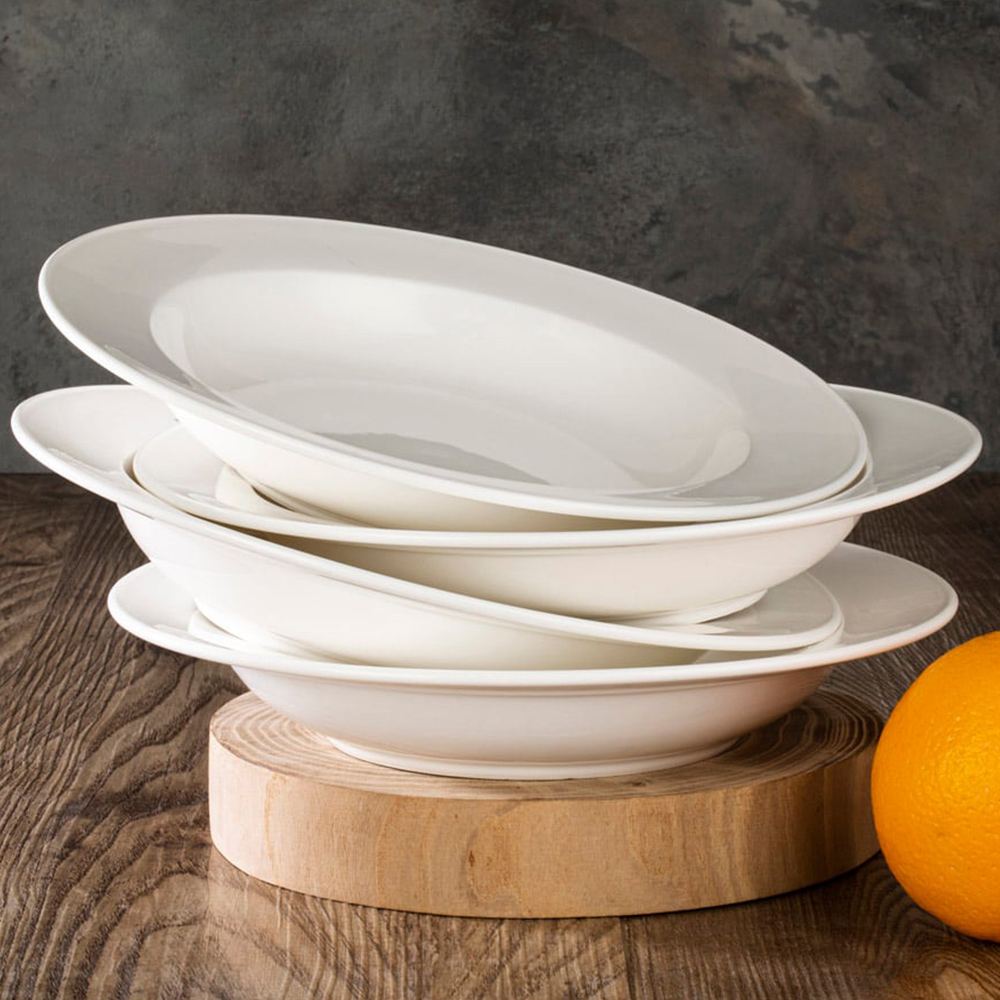 Waterside Professional Alumina White 4 Piece Porcelain Classic Rim Pasta Bowl Set