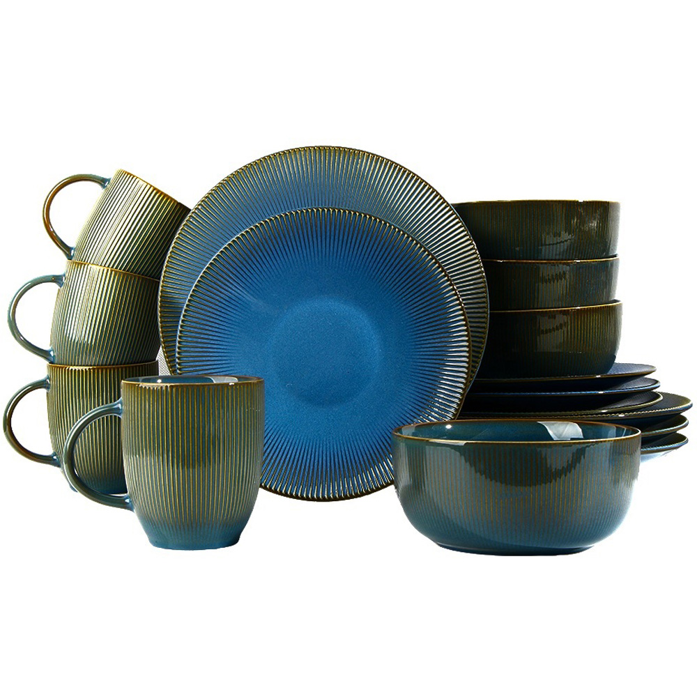 Waterside Reactive Glaze Blue 16 Piece Dinner Set