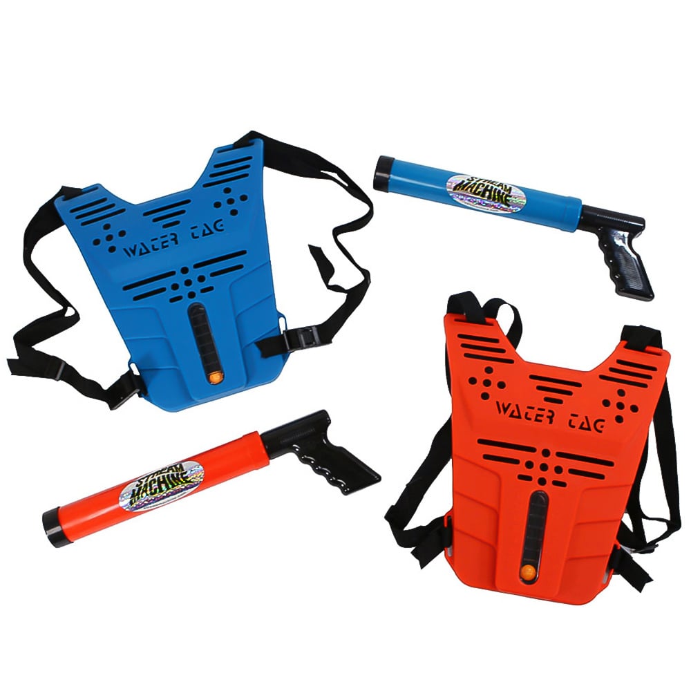 Object is to fill your opponesnt's vest with water to win. Includes 2 vest and 2 TL-600 Stream Machines. Vests are 1 size fits all with adjustable straps.