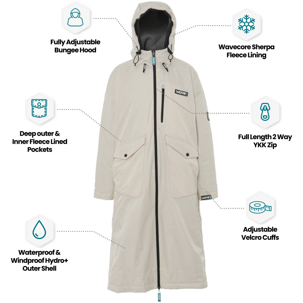 Dive into comfort and style with the Wave 3-in-1 Robe, a masterclass in versatility and performance. Crafted to conquer any weather condition, this unisex robe in ecru cream seamlessly transitions from a waterproof and windproof parka to a cosy fleece-lined jacket or a functional changing robe. Ideal for open-water swims, mountain hikes, or the daily school run, it ensures you stay protected, warm, and effortlessly stylish.