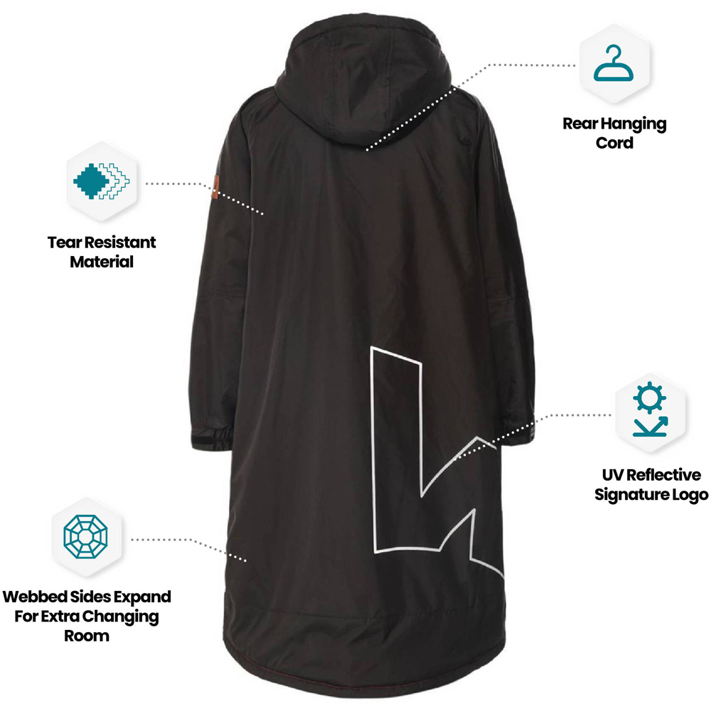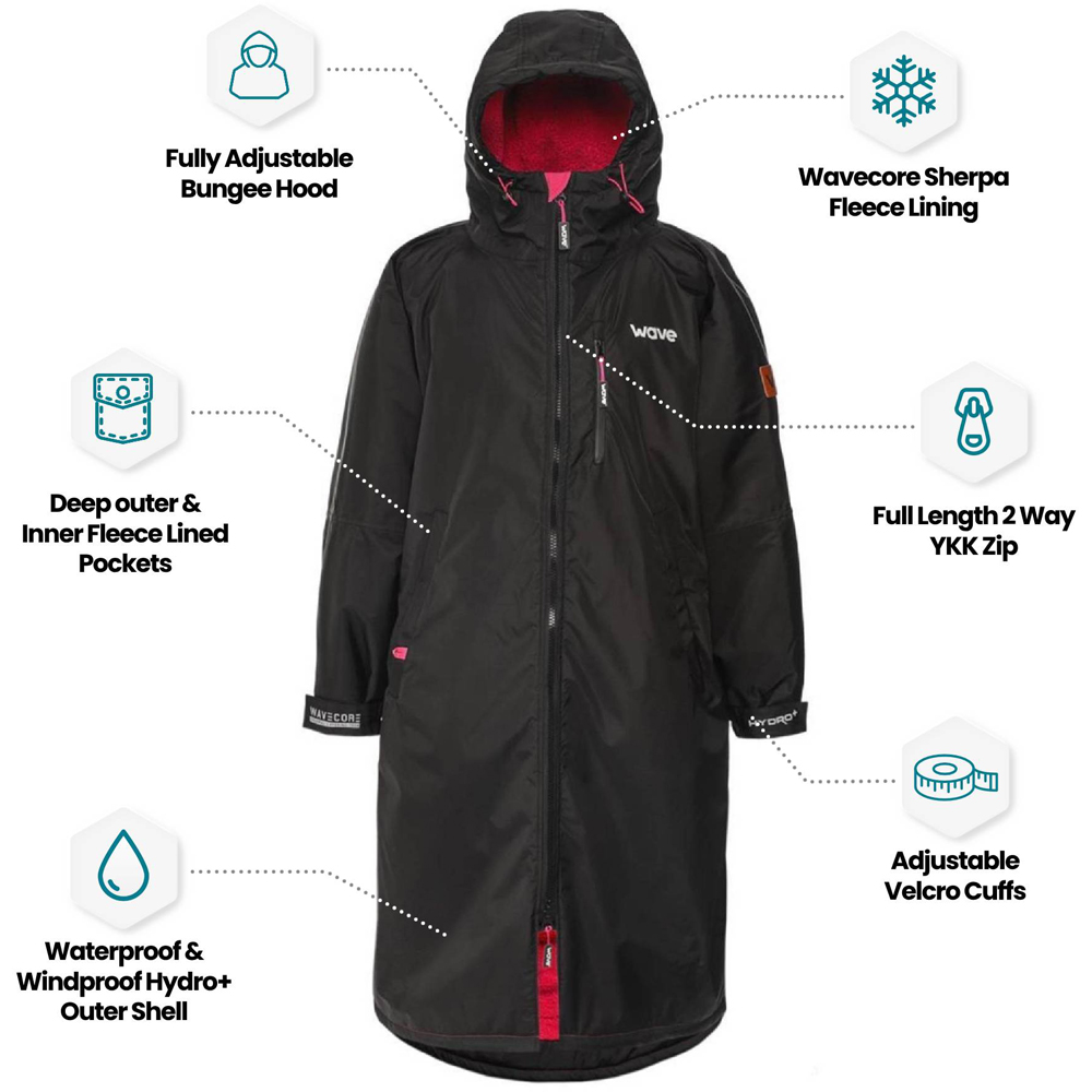 Embrace the great outdoors with the Wave Changing Robe, a unisex essential that combines comfort with practicality in a sleek black and pink design. This robe is crafted to ensure you stay warm, dry, and shielded from harsh weather conditions, featuring a waterproof and windproof outer shell along with a fleece lining that dries quickly. Its oversized fit provides ample space for easy changing, making it perfect for surfers, swimmers, and outdoor enthusiasts. Lightweight yet durable, it's your ideal partner for any adventure, ensuring you remain cozy and stylish.