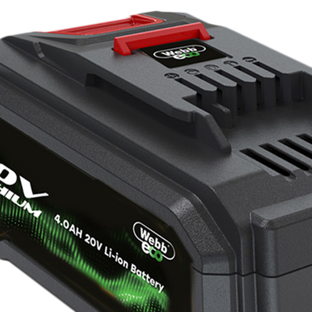 The Webb 20V 4Ah Battery is a superior choice as it provides double the power compared to the 2Ah version. With its advanced lithium-ion cell technology, this battery ensures exceptional performance. It has a capacity of 4Ah and offers 80 watt hours of power.
