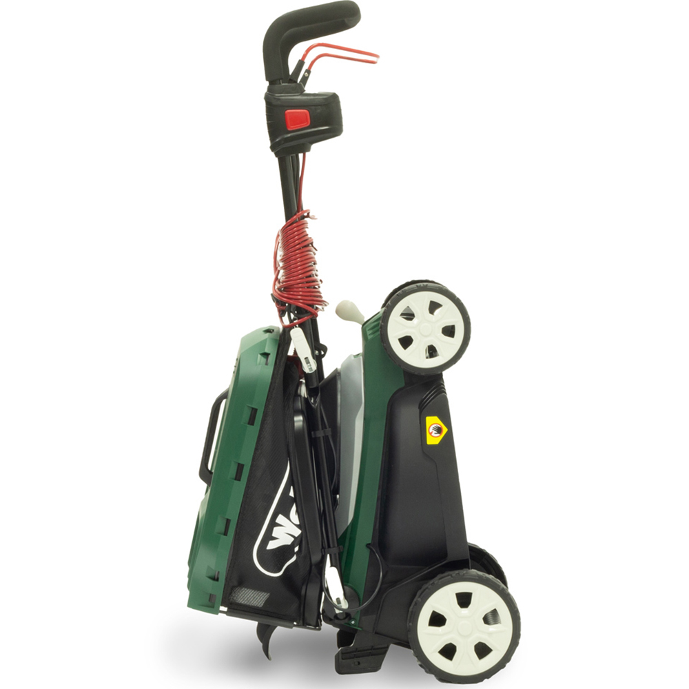 Enhance your lawn care routine with the Webb Classic 40cm Electric Rotary Lawnmower with Rear Roller. Ideal for medium to large-sized lawns, this lawnmower is equipped with a powerful 1800W electric motor that effortlessly handles even the toughest grass types, ensuring a precise cut every time. With six cutting height settings ranging from 25mm to 75mm, you can customise your lawn care to achieve your desired look, whether it's a shorter, well-manicured lawn or a slightly longer appearance. The rear roller not only creates visually appealing striped patterns on your lawn but also provides stability and control while manoeuvring the mower. To minimize interruptions during mowing sessions, this lawnmower features a spacious 45L collection box, reducing the need for frequent trips to empty clippings and allowing for a more continuous and efficient mowing experience. Weighing just 12.8kg, it is designed for easy manoeuvrability and storage, catering to users of various physical strengths. With an 18-meter cable length, you can enjoy ample reach without the need for additional extensions, adding to the convenience of the mowing process. Furthermore, this lawnmower comes with a 3-year guarantee.
