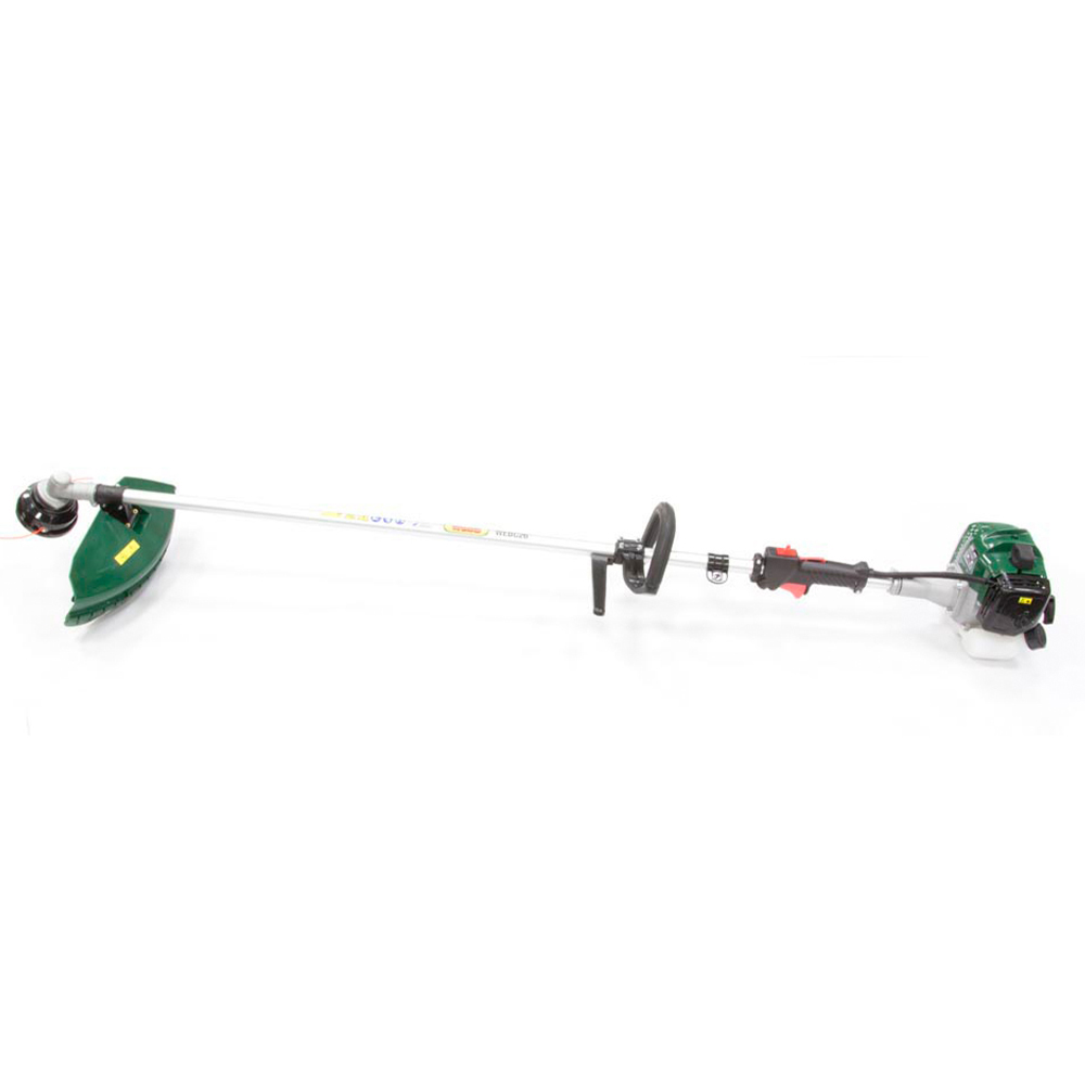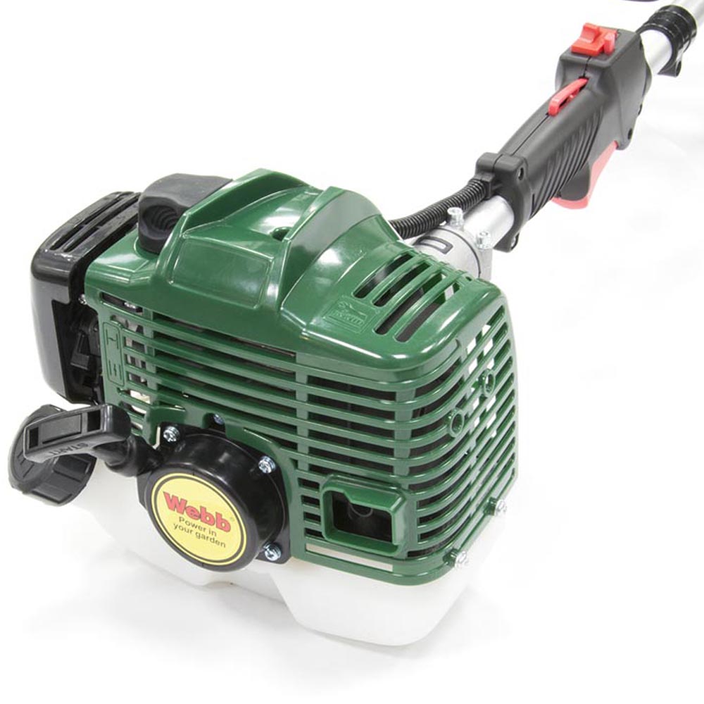 Driven by a premium 26cc full crank two-stroke petrol engine and equipped with both a line-head and brush-blade, the UK-designed Webb Straight Shaft Loop Handled Brushcutter offers powerful performance and great versatility. It features a loop type handle that offers superior grip and ease of use. It weighs just 6.5kg and is supplied with a shoulder-harness as standard. Dimensions: 186.5 × 33 × 24cm. Working width: 25 cm (10inches). It comes with a three-year warranty.