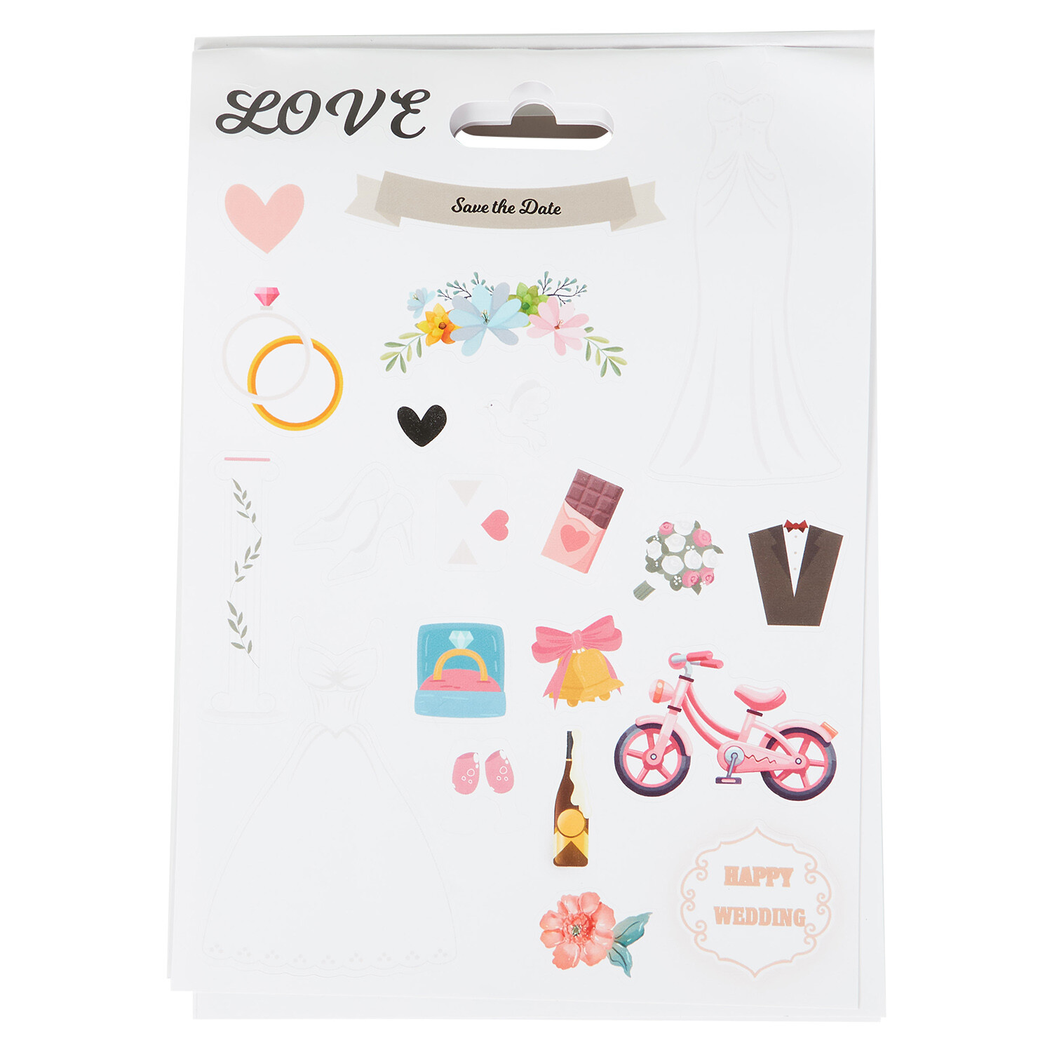 Capture your beautiful wedding memories with the Wedding Scrapbook Sticker Book. Including six sheets- each sheet is filled with charming wedding-themed stickers to give a perfect finish to your big day moments, making them perfect for decorating scrapbooks and photo albums.