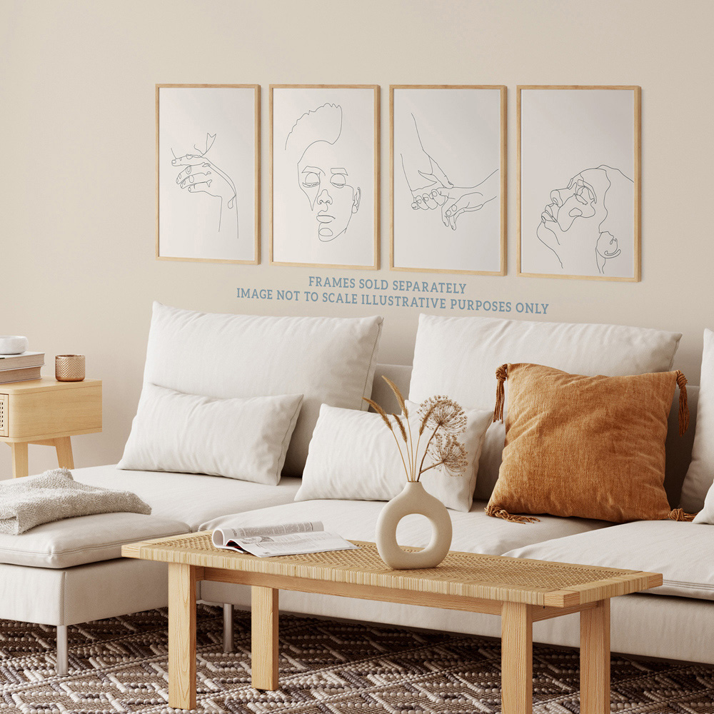 Enhance your space with the serene beauty of the Set of 4 Minimalist Simple Line Drawing Faces Hands Black Cream Wall Art Prints. Each print in this quartet measures 30 x 41 cm, capturing the essence of minimalist elegance with simple line drawings of faces and hands. Crafted on thick, luxurious art paper, these black and cream prints offer a sophisticated touch that complements any decor style. Ideal for those who appreciate the subtleties of artwork, this set brings a calm, artistic presence to any room.