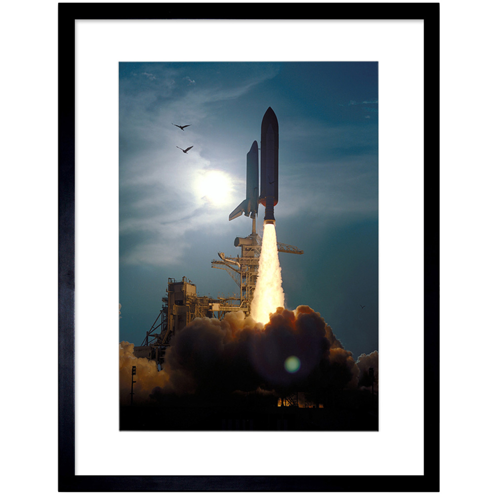 Elevate your space with the iconic Wee Blue Coo NASA Space Science Shuttle Discovery Launch 1994 framed art print, capturing a historic moment in space exploration. Crafted with superior materials and the latest printing technology, this high-quality print ensures vibrant colours and sharp details, all encased in a sturdy wooden frame with shatterproof styrene glass. Measuring 30 x 41 cm, it's the perfect size to make a statement while fitting seamlessly into various decor styles. Ideal for space enthusiasts and history buffs alike, this print brings a piece of cosmic history right into your home or office.