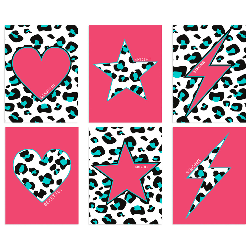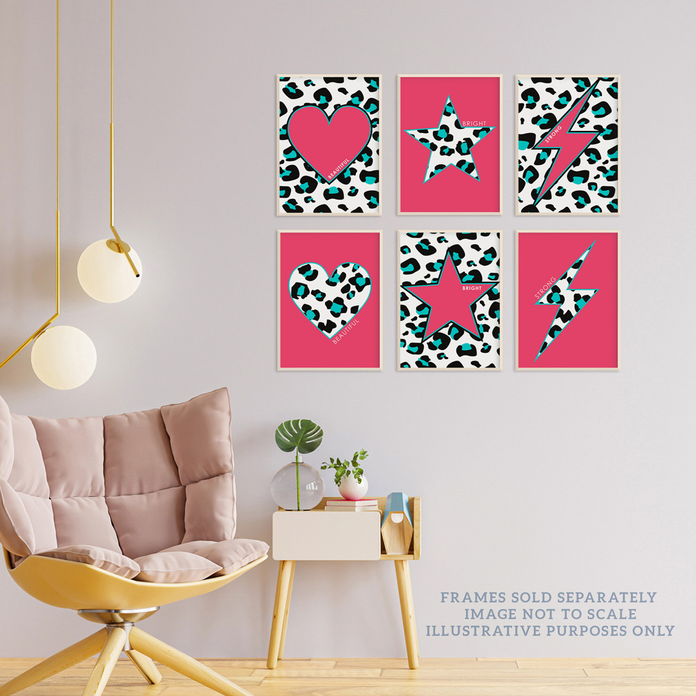 Brighten up your space with the vibrant allure of the Pack of 6 Pink Turquoise Leopard Pattern Bold Shapes Wall Art Prints! Each 12x16 inch print brings a splash of colour and contemporary style to any room, crafted on thick, luxurious art paper for a premium feel. With their unframed design, these prints offer versatility in styling, allowing you to choose frames that perfectly match your home's decor. Despite variations in screen settings affecting the colour perception, the quality and impact of these prints remain impressive.