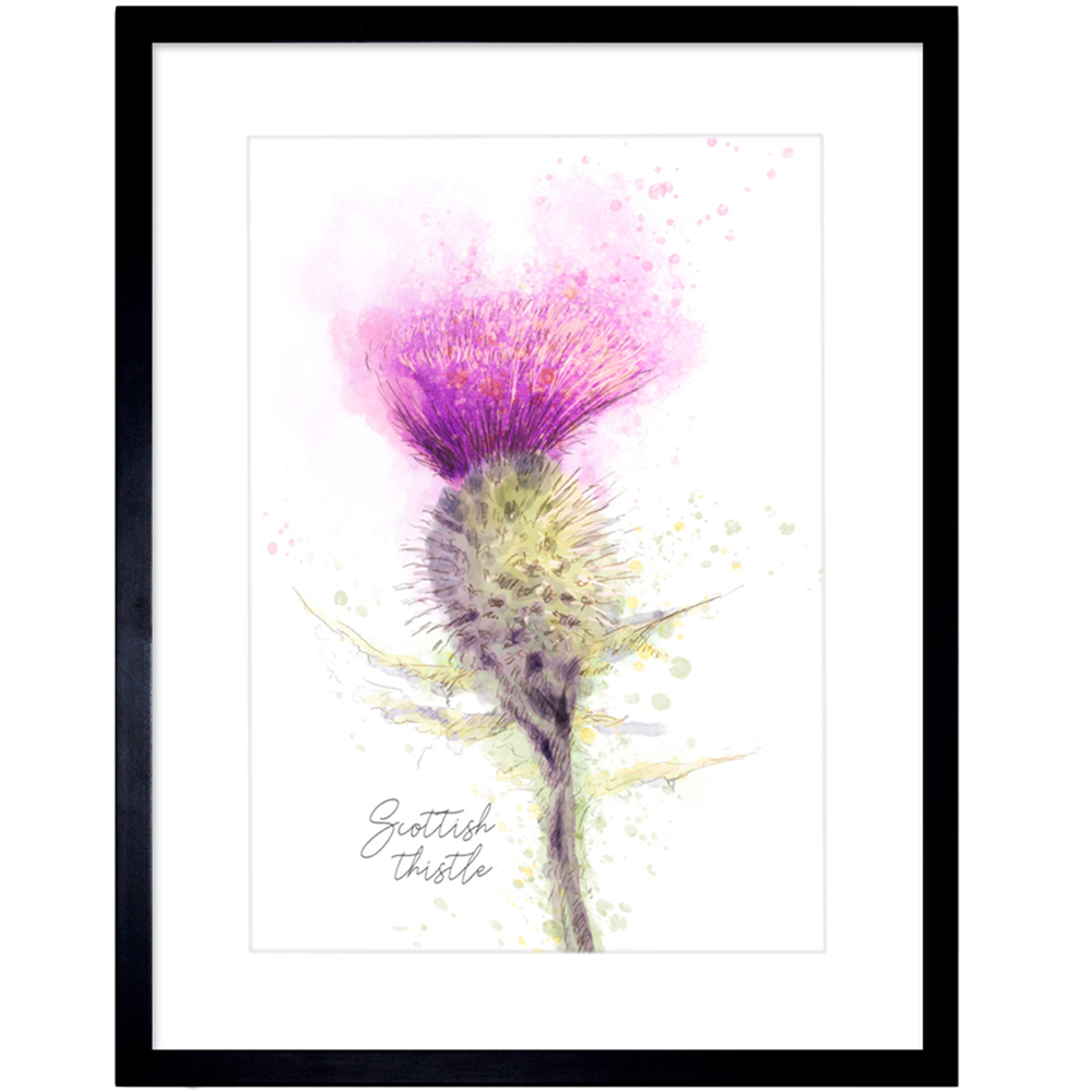 Wee Blue Coo Scottish Thistle Flower Bloom Watercolour Framed Wall Art 23 x 18cm