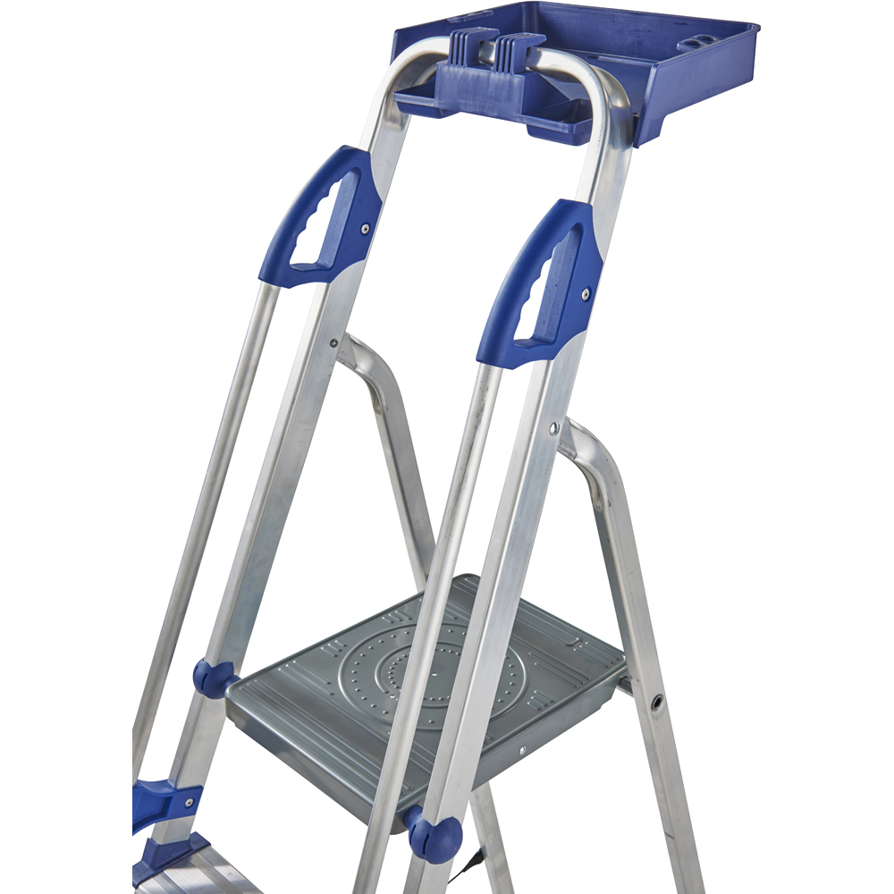 Execute your task safely while elevating your reach with the Werner 6 Tread Workstation Step Ladder. This ladder is ergonomically designed to achieve maximum performance when working at height. It also features twin safety handrails for increased support while climbing the ladder. It has a high-quality steel platform that is cycle-tested to over 50,000 cycles using a 150kg load capacity. The large platform has a height of 1.24m and provides added comfort and stability while working in a standing position. The stow-away work tray has a 12kg load holding capacity and keeps tools and materials accessible while working.