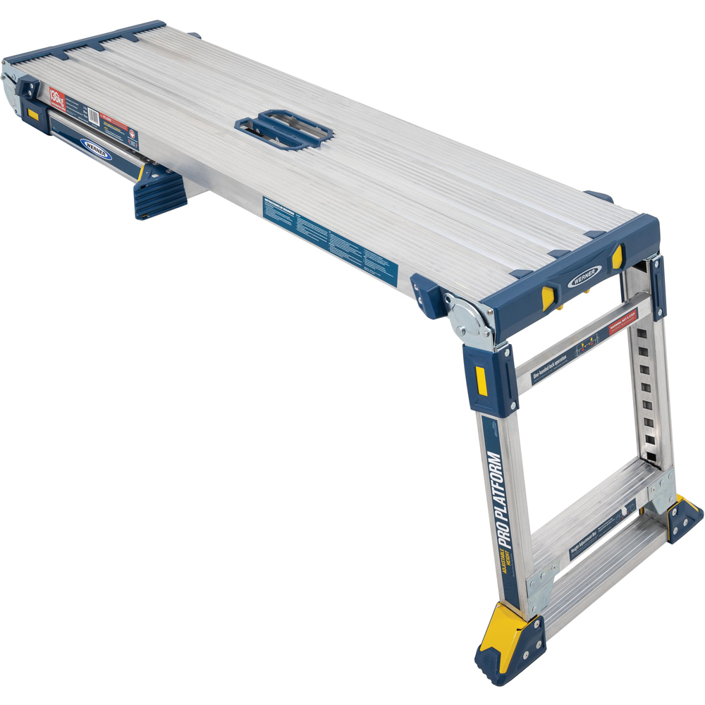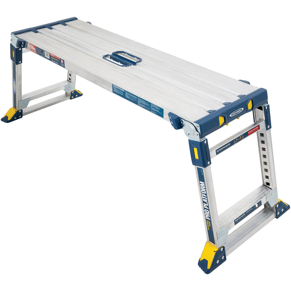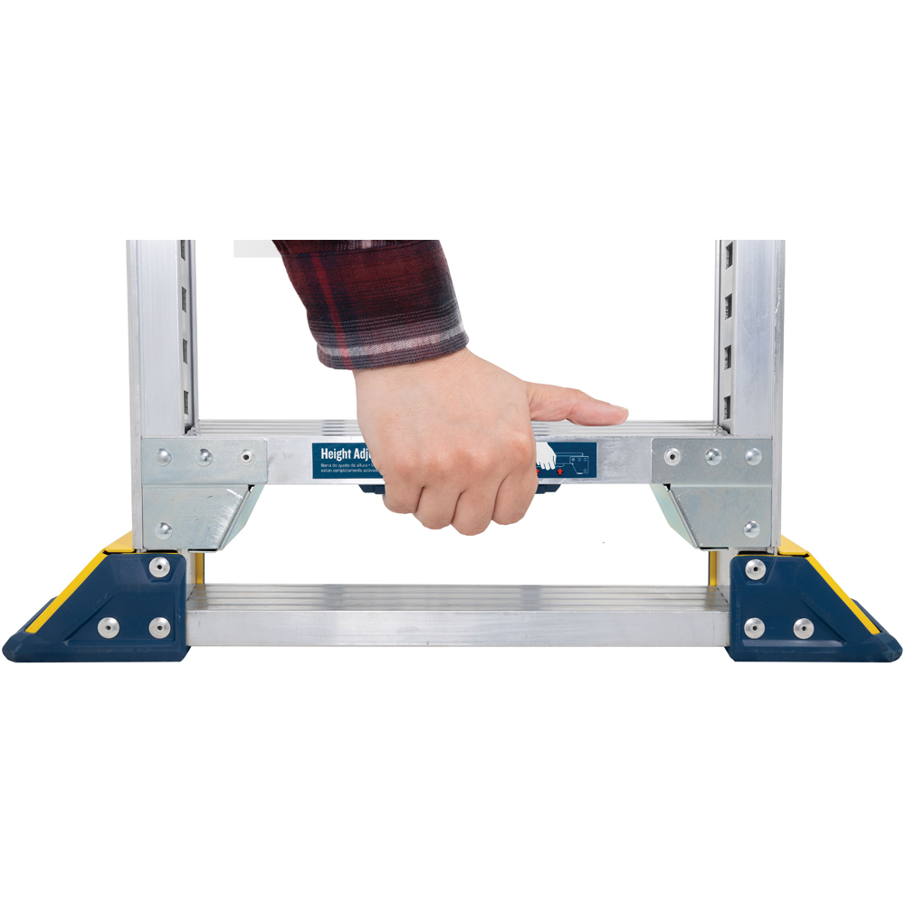 Upgrade yourself with the best with the Werner Adjustable Aluminium Pro Work Platform. The adjustable work platform is designed to cater to the needs of professionals who have to work on uneven surfaces and stairways. With a remarkable height adjustability of 25cm on both sides, this work platform offers flexibility and convenience, allowing you to adjust the height according to your preference and requirement. The single-handed lock and height adjustment feature makes it incredibly easy to use, even for those with limited mobility. Additionally, the slip-resistant bumpers offer added safety and stability when using the platform on stairwells. The easy-grab handle is another noteworthy feature that makes it effortless to carry your platform swiftly and securely, providing you with a reliable tool for your work.