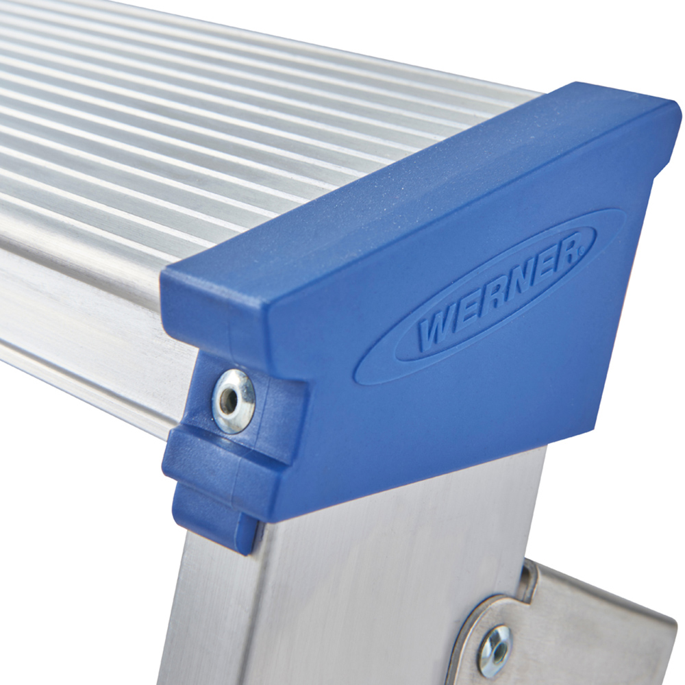 Complete your task while elevating your reach with the Werner MasterTrade 6 Tread Step Ladder. It is a traditional ladder for builders approved to the latest EN131 standard, ideal for professional use. This robust ladder is engineered using high-grade aluminium box section stiles. It features heavy gauge plastic-edge caps for a smoother profile with heavy-duty internal spreaders and slip-resistant treads for comfort and security.