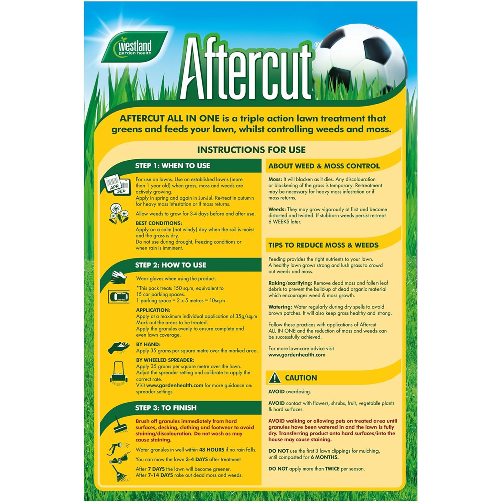 Spruce up your lawn with the Westland Aftercut All In One 16kg, a granular formula that covers up to 500 square meters, offering a comprehensive solution for your green spaces. It not only nourishes the grass with high levels of nitrogen for controlled growth but also effectively kills moss and eradicates weeds. Ideal for use during spring and summer, it promises a greener lawn within just seven days. Please Note: This product must be used carefully, so please follow the instructions closely to protect your health and the environment.
