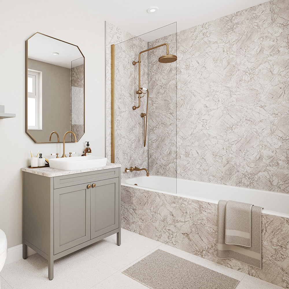 Wetwall Mermaid 2420 x 900mm Bianco Marble Concrete Plywood Shower Wall Panel