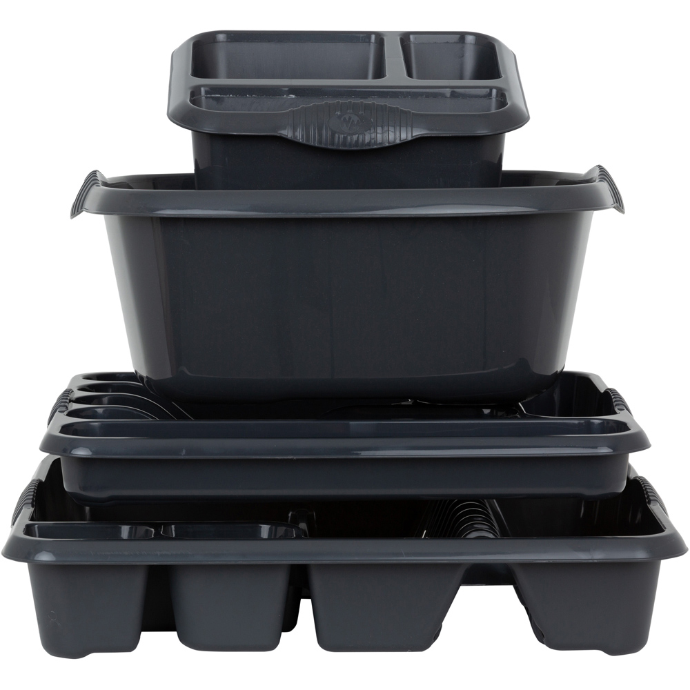 Keep your kitchen organised and tidy with this four-piece Midnight Casa Plastic Kitchen Set by Wham. The set includes a 38cm rectangular bowl, a large cutlery tray, a large dish drainer and a sink tidy. The cutlery tray keeps forks, knives, spoons and accessories separately. It easily fits into your drawer for tidy storage. The dish drainer makes light work of draining and drying crockery and utensils. The 38cm rectangular bowl is perfect for washing purposes. The finely crafted sink tidy keeps your washing-up items neat.